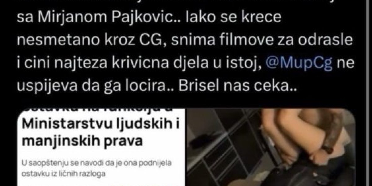 Crnu Goru i Vladu te zemlje koju vodi Milenko Spajić ne prestaje da trese skandal povezan sa nekadašnjom državnom sekretarkom u Ministarstvu ljudskih i manjinskih prava, Mirjanom Pajković, a sada su procurili njeni novi eksplicitni snimci pravog bluda i razvrata.