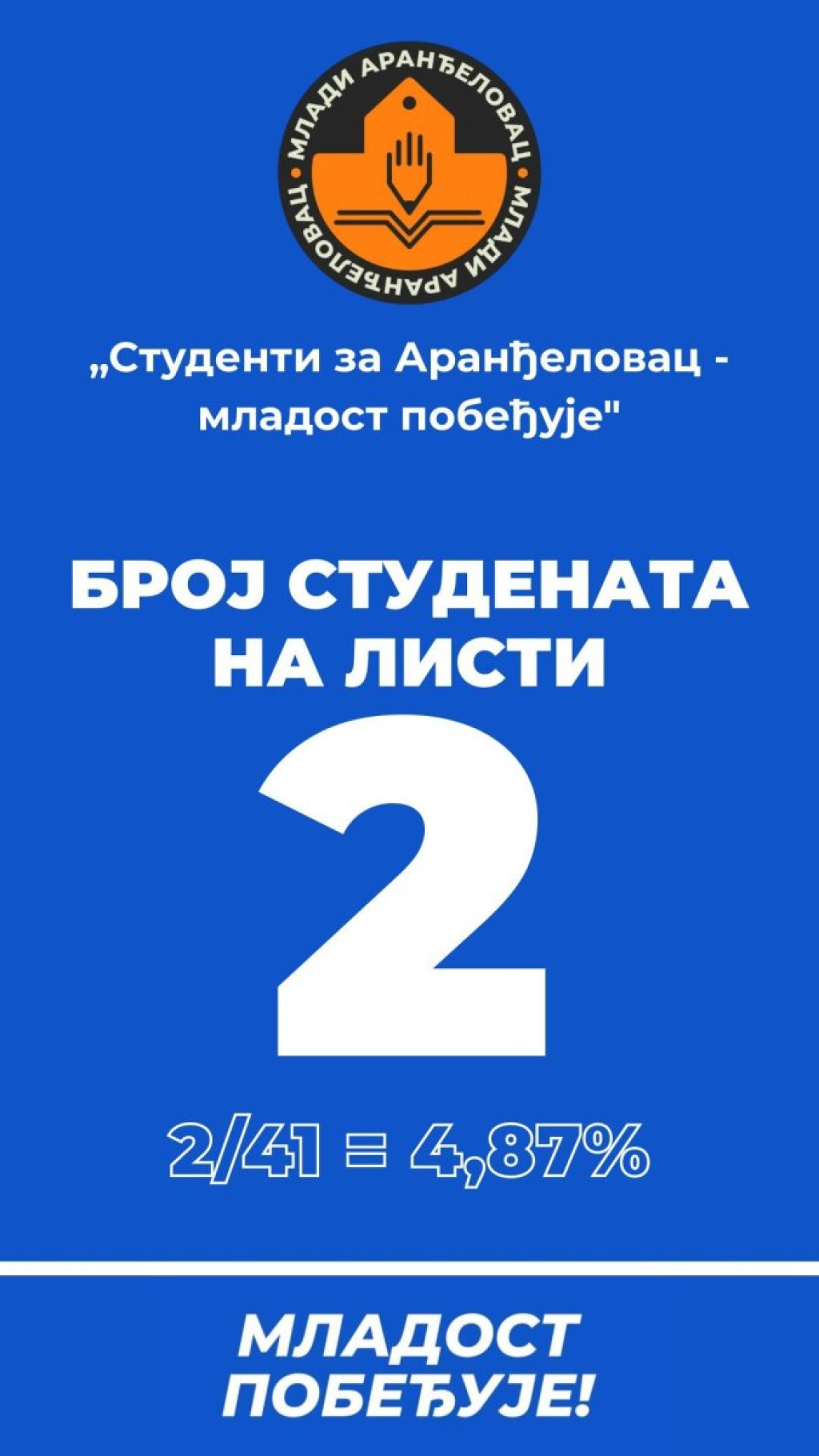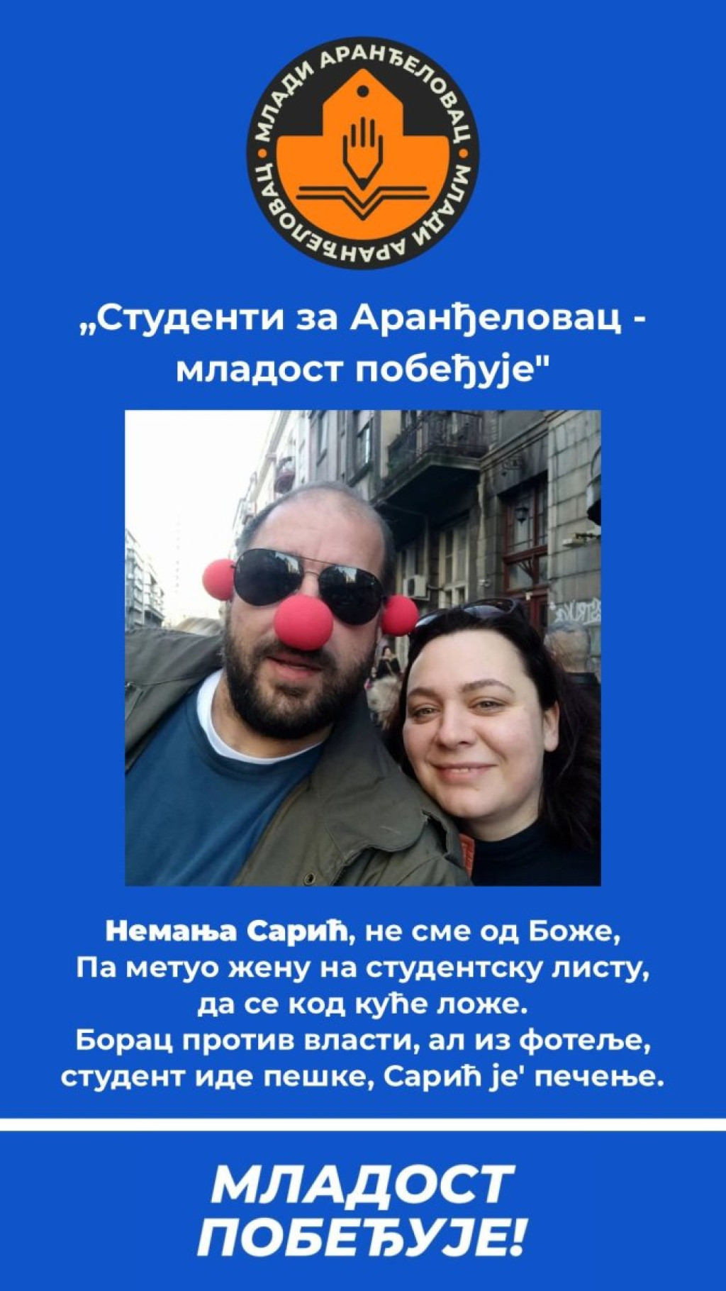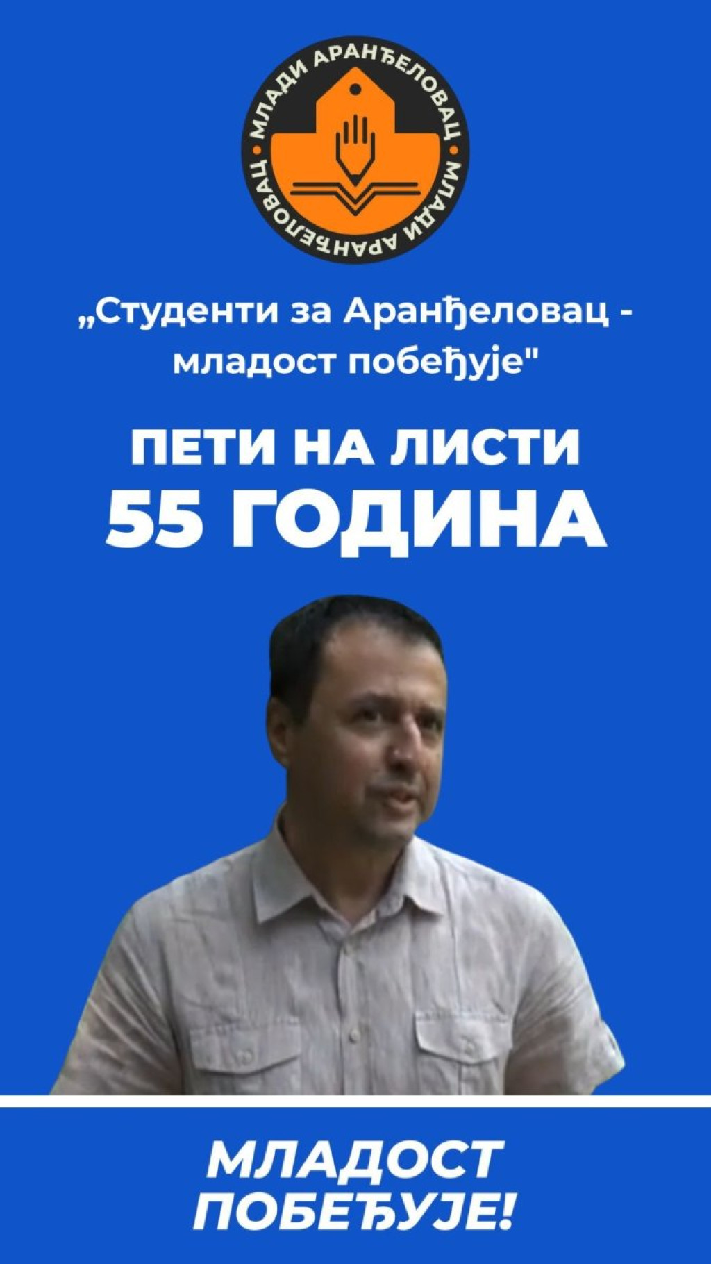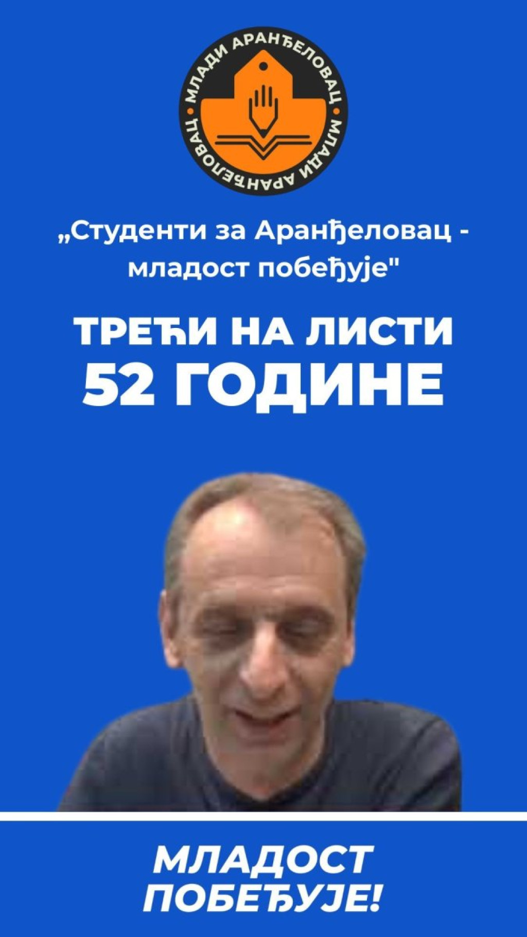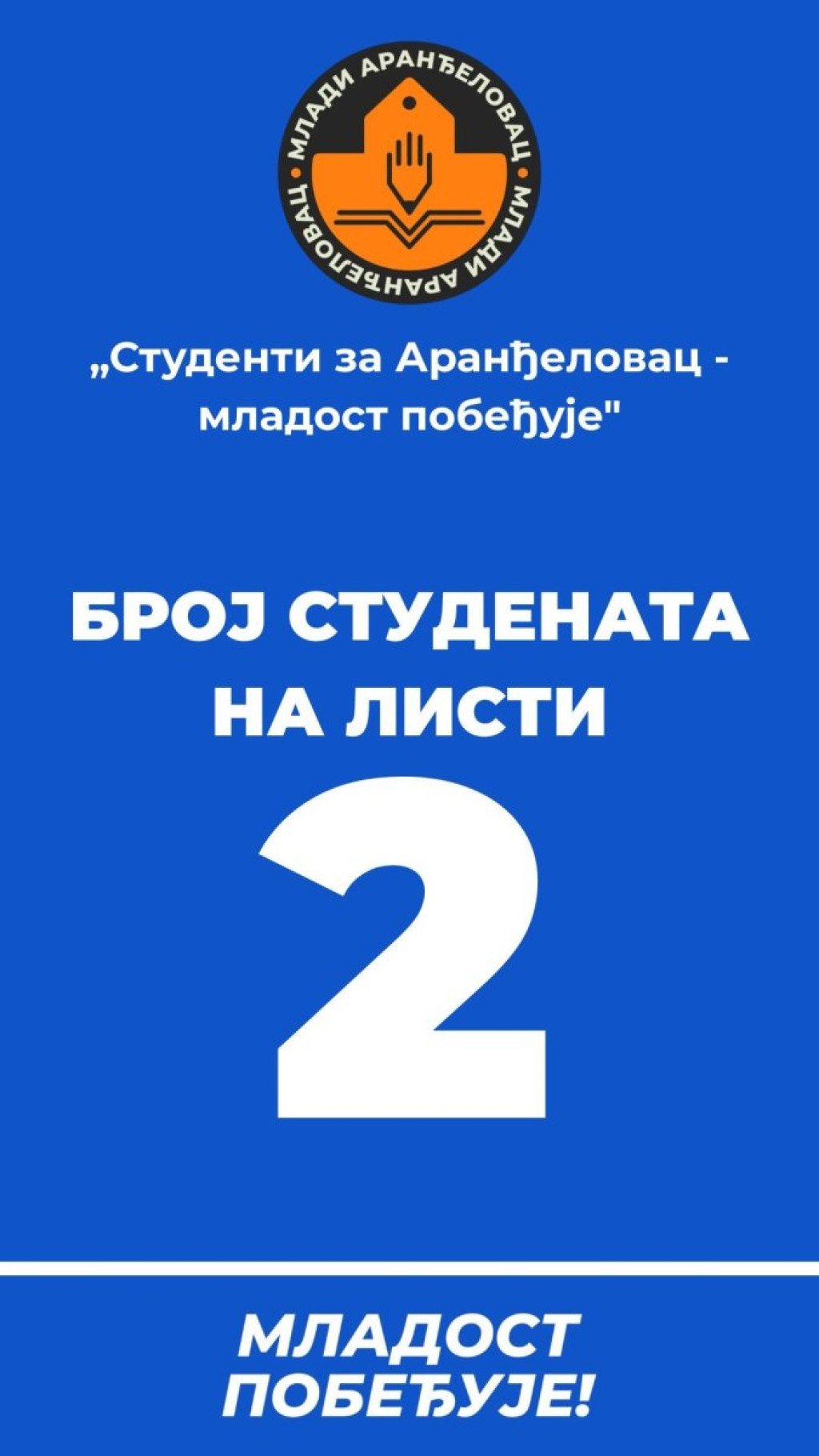 Takozvani studenti iz Aranđelovca, čiji je prosek godina 50, predali su svoju listu za lokalne izbore 29. marta, koja će nositi ime "Mladost pobeđuje".
