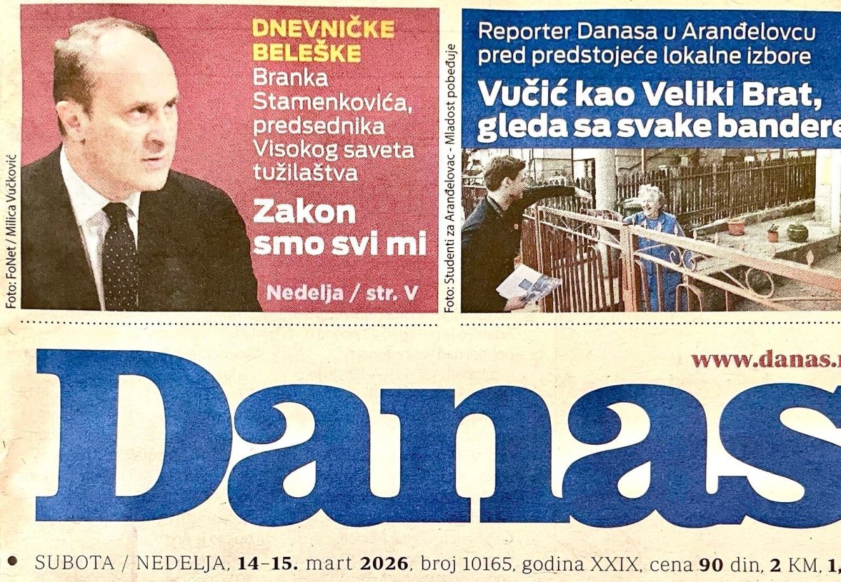 Predsednik Odbora za pravosuđe, državnu upravu i lokalnu samoupravu Skupštine Srbije i narodni poslanik SNS dr Uglješa Mrdić prokomentarisao je tekst koji je za "Danas" napisao predsednik Visokog saveta tužilaštva Branko Stamenković