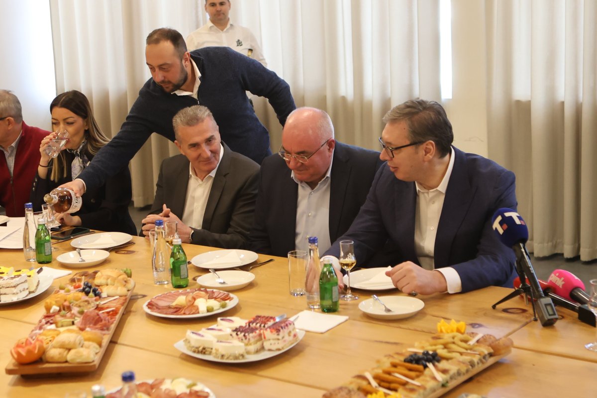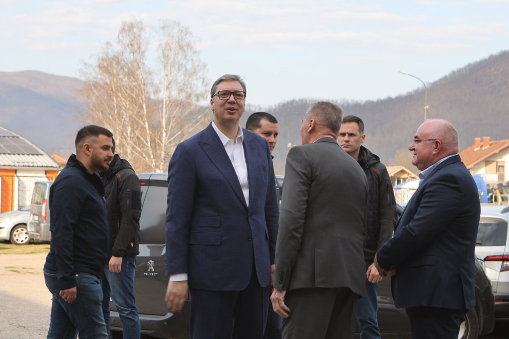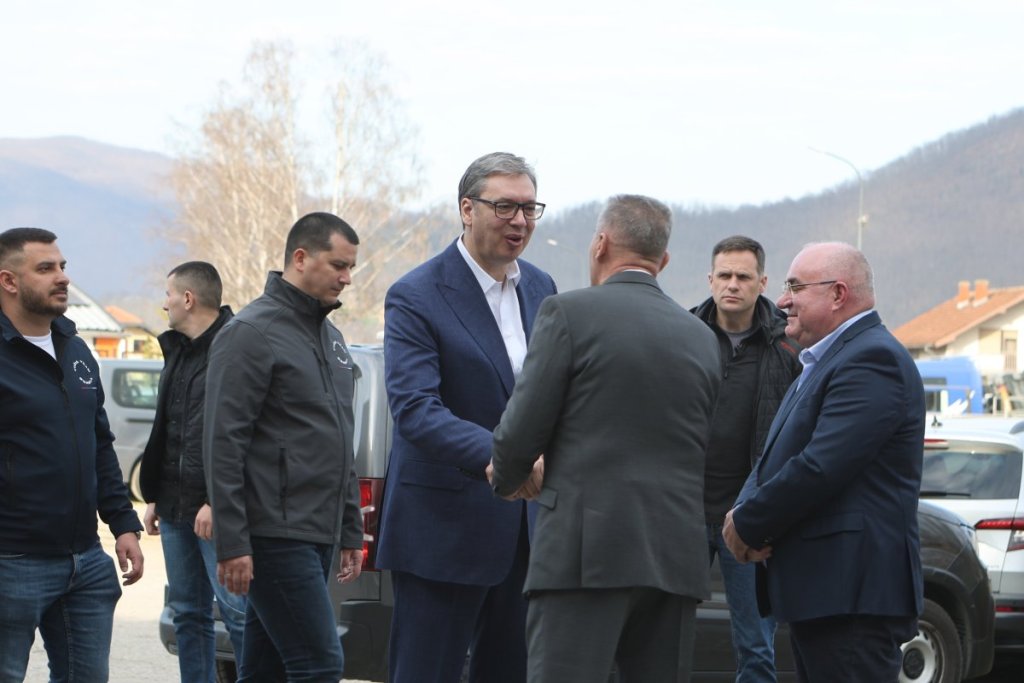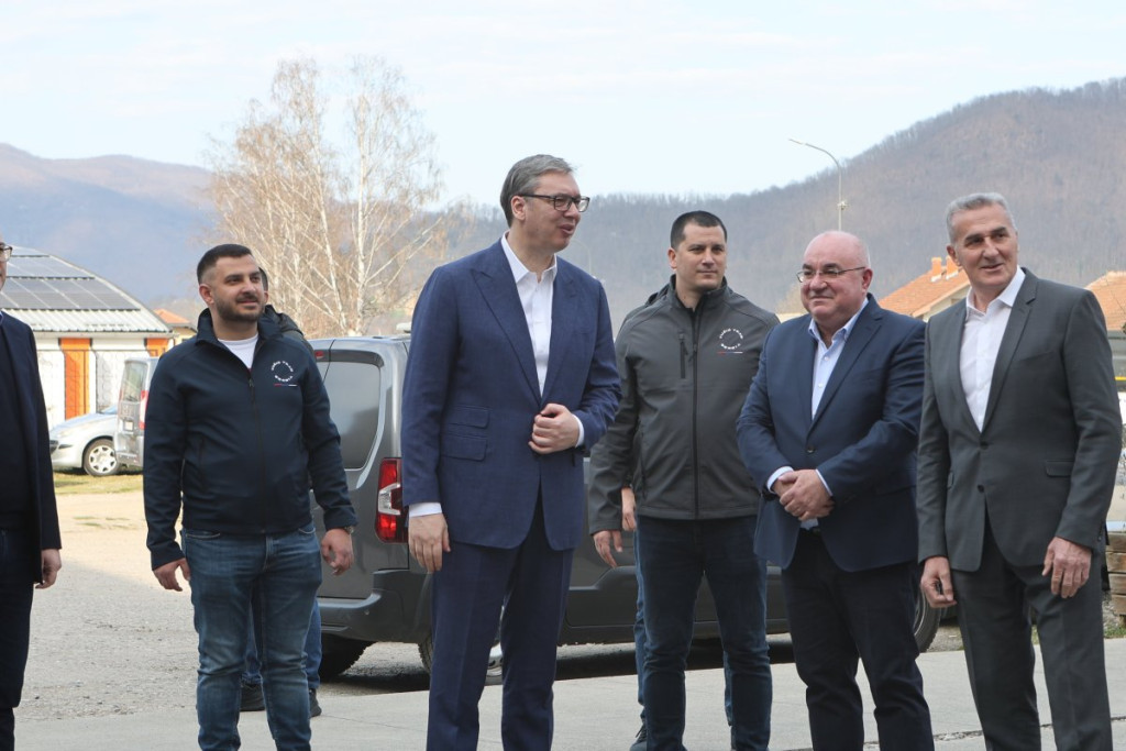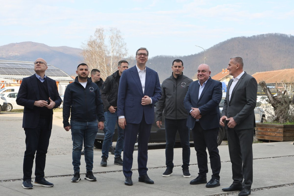 Sa predsednikom su u poseti Bajinoj Bašti i Adrijana Mesarović, ministarka privrede, kao i Miloš Vučević, predsednik SNS-a.
