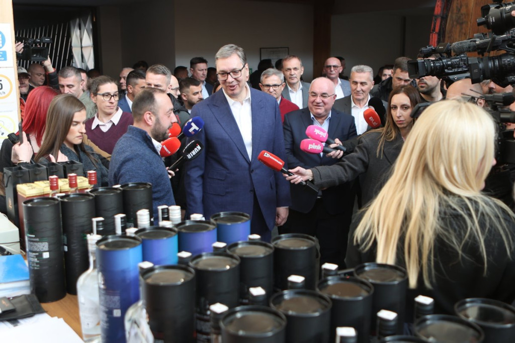 Predsednik je pozdravio okupljene, a potom pogledao kako izgleda rad u pomenutoj destileriji... Ujedno Aleksandar Vučić je najavio velika investiranja u ovaj kraj.