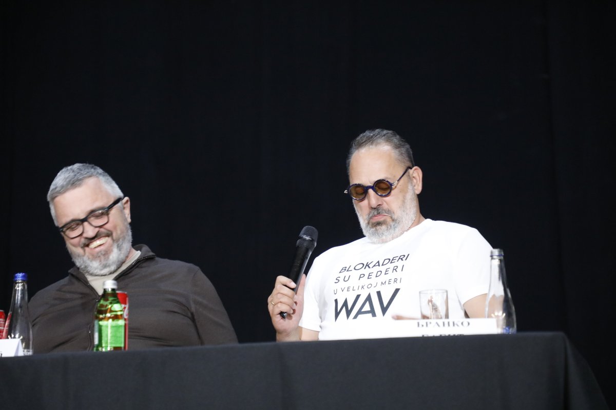 Zatim se ponovo uključio Babić, čija je majica privukla posebnu pažnju na današnjoj tribini. Kada su ga pitali šta ona znači, duhovito je uzvratio: "Stalno slušamo: "Vučiću pederu", a bolje se rimuje "blokaderi su pederi" - istakao je Babić.