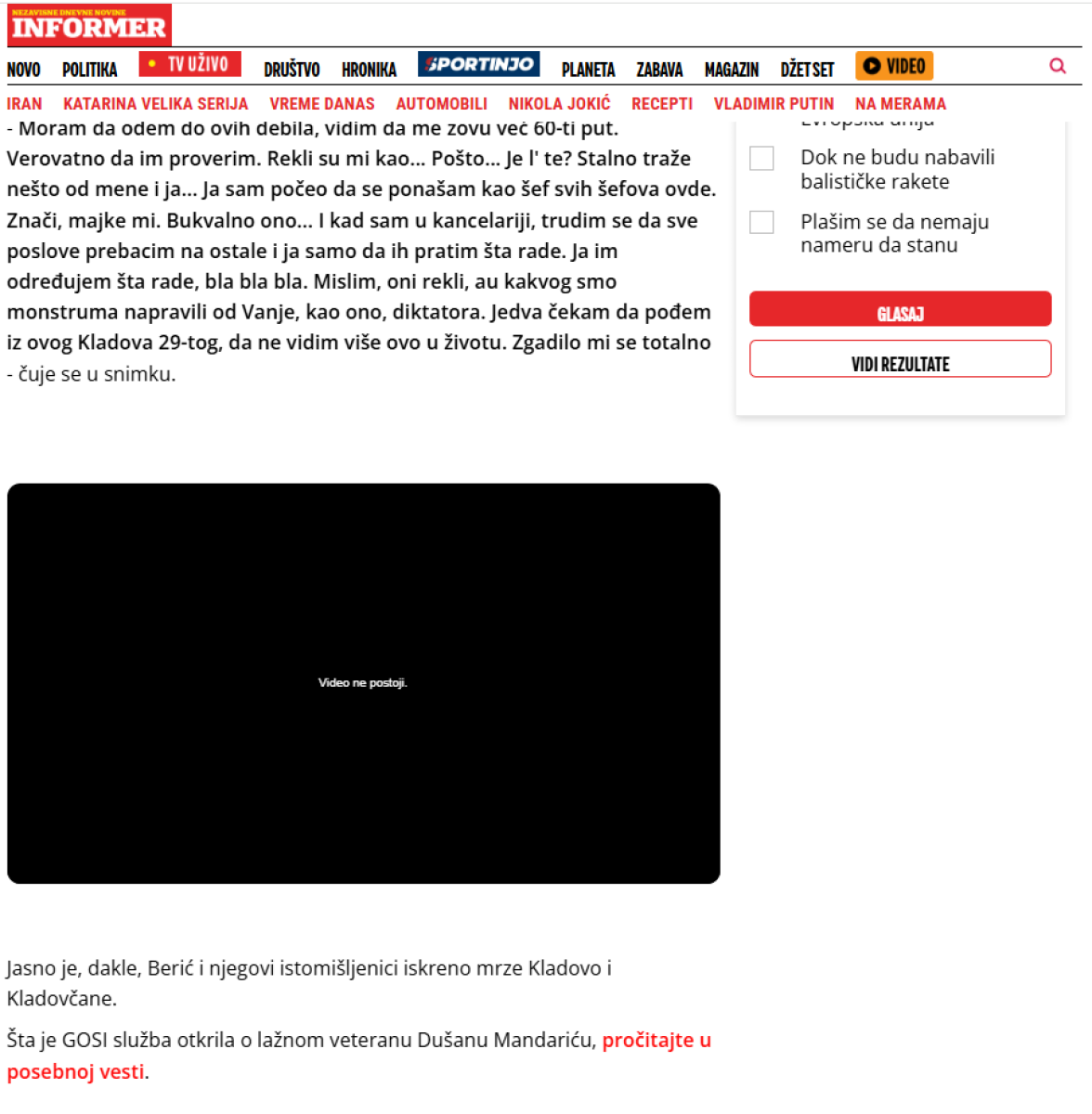 Kako se može videti u foto isečku, u originalnoj vesti o ovoj temi prijavljeno je da video ne postoji.