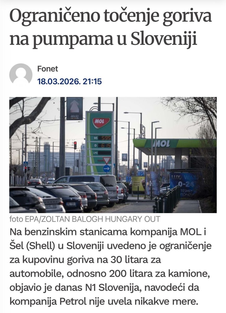 Ograničeno točenje goriva u Sloveniji: Šta bi Šolakovi mediji pisali da je u Srbiji?! (FOTO)