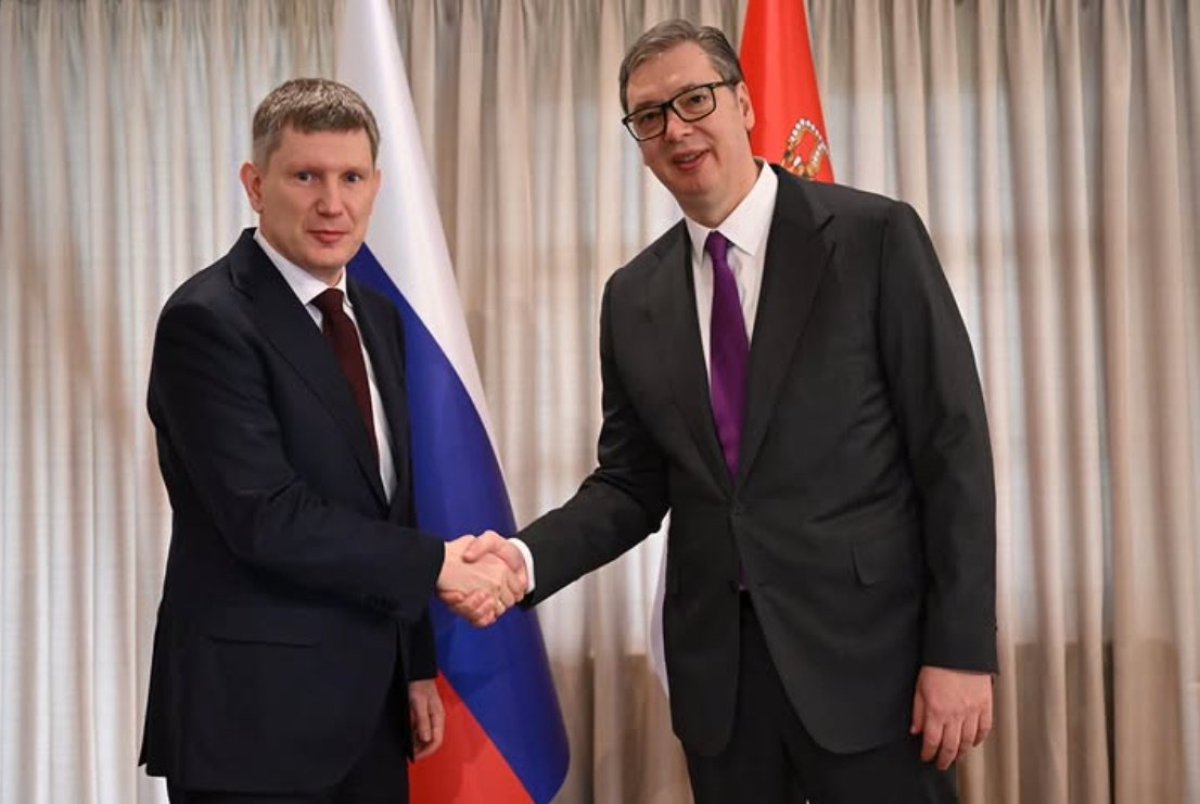 ''Sa ministrom Rešetnjikovim o bilateralnoj saradnji u različitim oblastima, kao i o ključnim pitanjima od strateškog značaja za energetsku i ekonomsku stabilnost Republike Srbije, aktuelnim globalnim kretanjima i njihovim implikacijama na region, sa fokusom na energetsku bezbednost, stabilnost tržišta i održivost postojećeg ekonomskog poretka'', naveo je Vučić na svom Instagram profilu 'buducnostsrbijeav'.