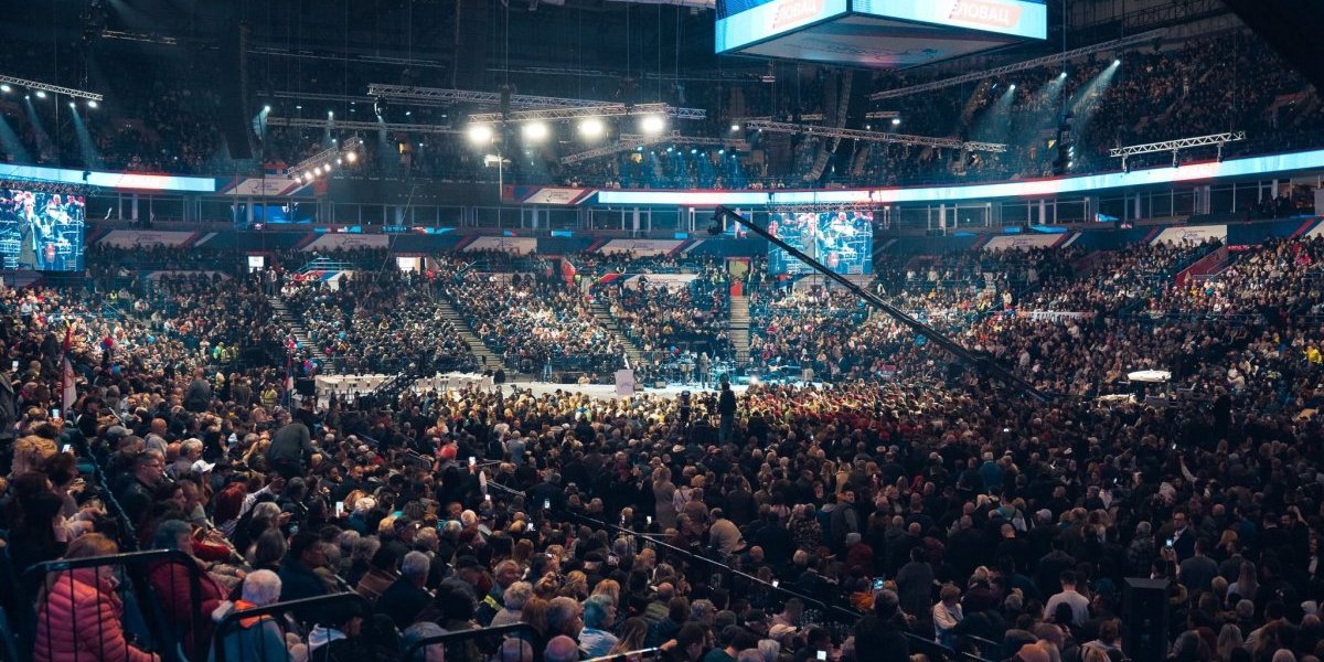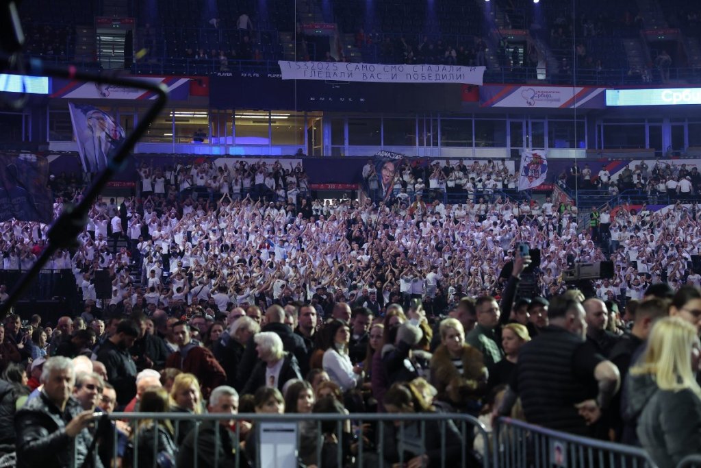 Veliki skup Srpske napredne stranke (SNS) na kom učestvuje i predsednik Srbije Aleksandar Vučić odražan je u Beogradskoj Areni. Prema zvaničnim policijski procenama prisustovalo je više od 70.000 ljudi.
