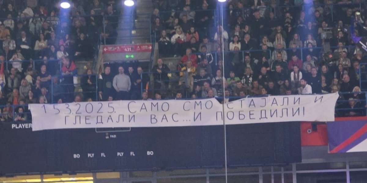 "15.3.2025. samo smo stajali i gledali vas i pobedili“, pisalo je na velikom transparentu, koji je podsetio na veliki protest koji su u Beogradu organizovali blokaderi, nakon koga su ljudi odustali od ideje da i dalje podržavaju taj pokret.