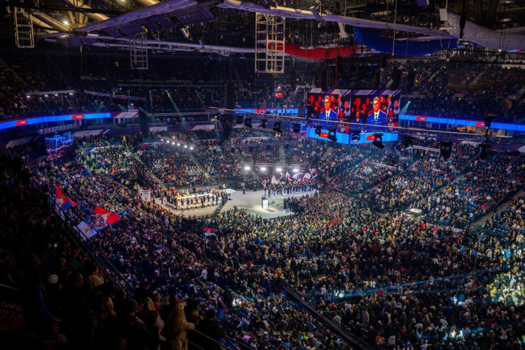 Na velikom skupu koji je održan juče u Beogradskoj areni, na kojem se obratio predsednik Srbije Aleksandar Vučić, prisustvovao je ogroman broj građana. Procene govore da je u hali i oko nje bilo čak oko 70.000 ljudi, koji su došli da pruže podršku politici stabilnosti i razvoja.