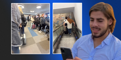 Pripadnici GOSI - Gledalačko obaveštajne službe Informera - prosledili su našoj redakciji fotografije i video snimke na kojima se vidi Stojaković kako čeka u redu na aerodromu u Atini.