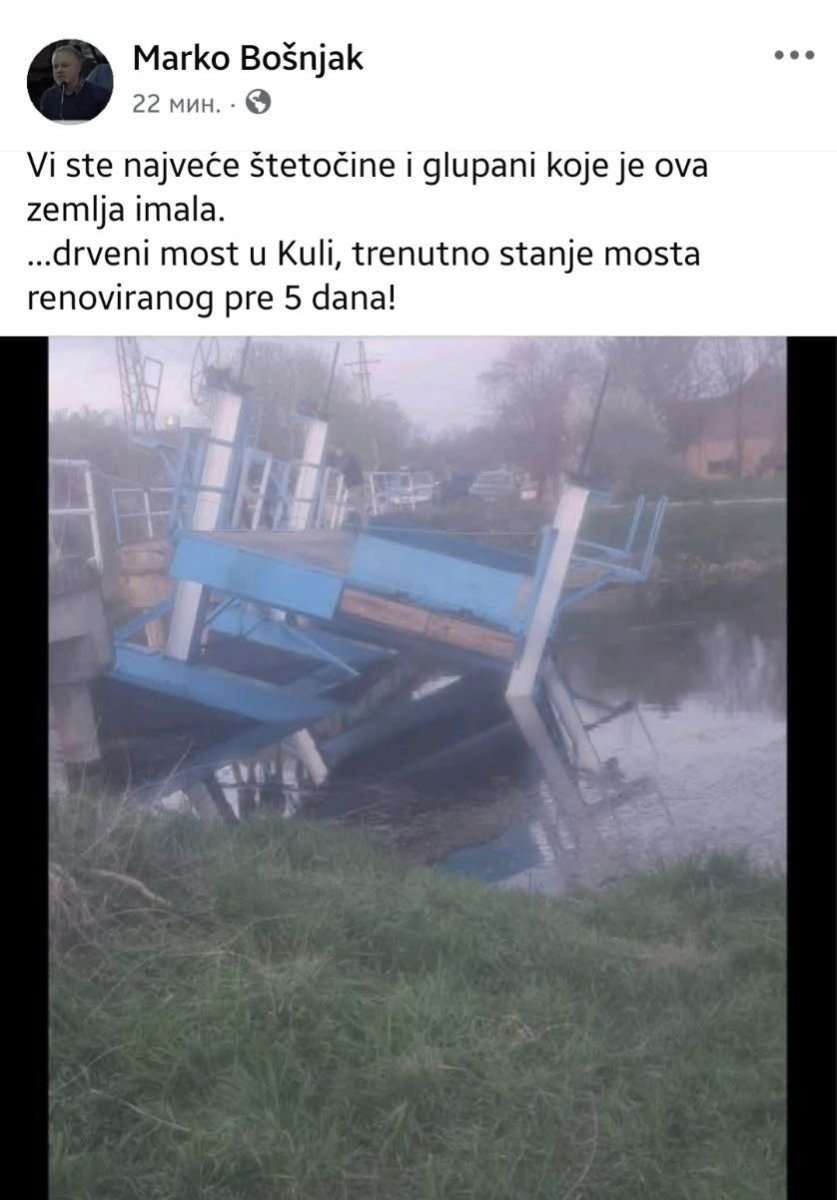 Sramno ponašanje osvedočenih blokadera koji fotografišu jedan segment postavljanja mosta u Kuli i prikazuju ga kao havariju, govori na koji bi način oni vodili i opštinu, kada bi imali priliku.