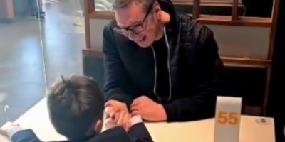 – Vukan se danas doterao i rešio da izvede tatu u TC Galerija. McDonald's je njegov izbor, ali mu to nije bila najveća radost. Lepo je jeo i sa lakoćom mi oborio ruku... – napisao je Vučić uz snimak.