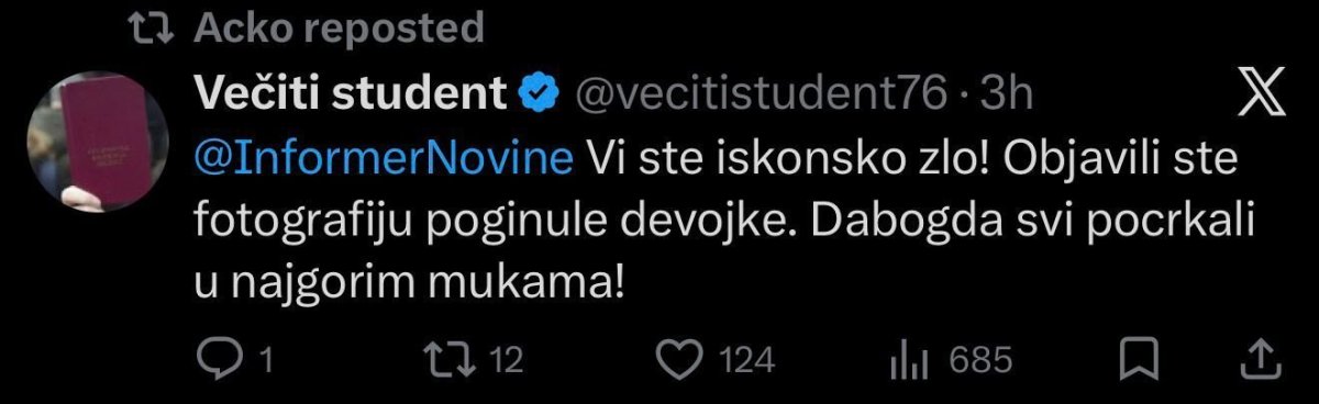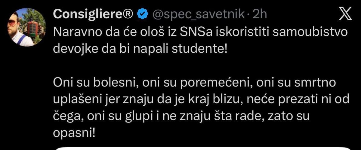 samo za ovo spinovanje dešavanja u kuli i objavljivanje snimka studentkinje koja je stradala mu treba najstrašnije jebati mater, a gde je sve ostalo