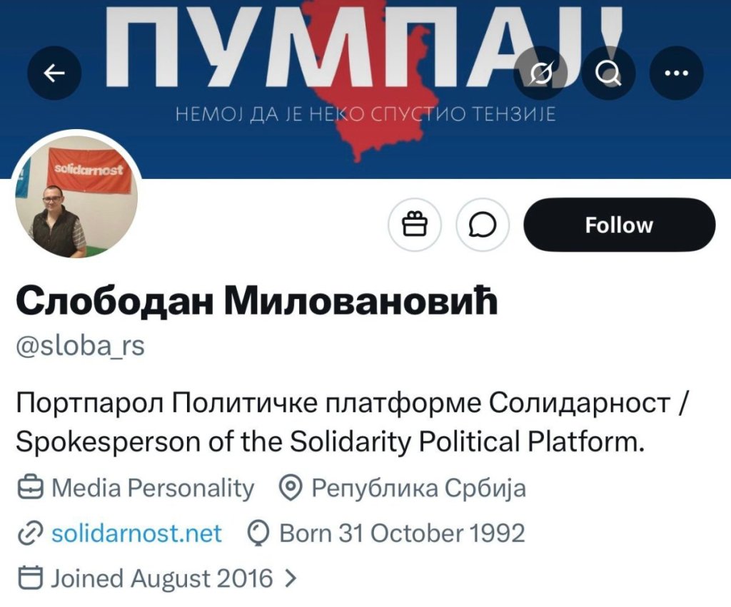 Iza svega stoji blokader sa dna kace koji je mesecima učestvovao u rušenju naše zemlje i čiji su profili na društvenim mrežama prepuni blokaderskih parola poput "pumpaj" i slično.