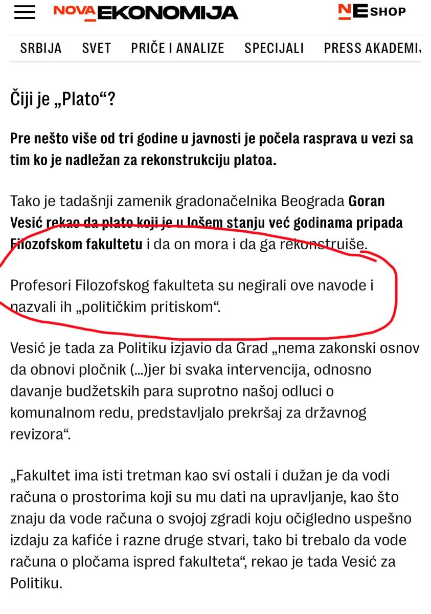 U nastavku možete videti dokaz o tome da su se javno ograđivali od platoa ispred fakulteta: