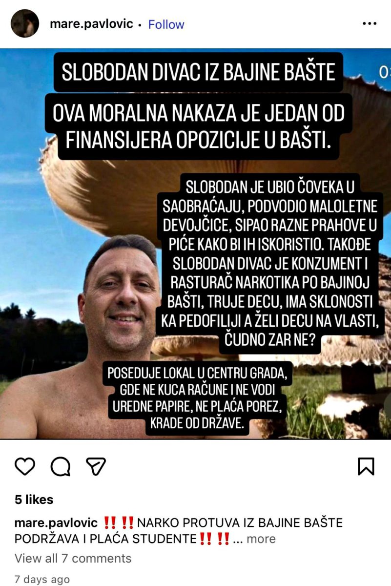 U Bajinoj Bašti dogodio se jezivi incident kada je iz "audija" izašao Slobodan Divac, narko-diler i lokalni kriminalac, sa sve pištoljem i nasrnuo na građane. Taj snimak su prvobitno objavili blokaderi, a potom ga obrisali, kada su shvatili da je Divac jedan od glavnih finansijera blokadera u Bajinoj Bašti.