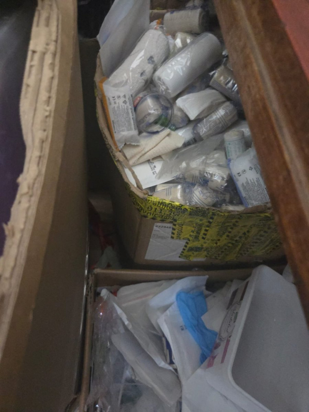 Prilikom pretresa prostorija Rektorata Univerziteta u Beogradu UKP je pored plataka sa krvavim šakama, pronašao i gomilu kutija i torbi sa medicinskom opremom.