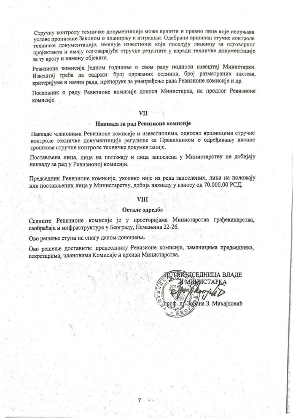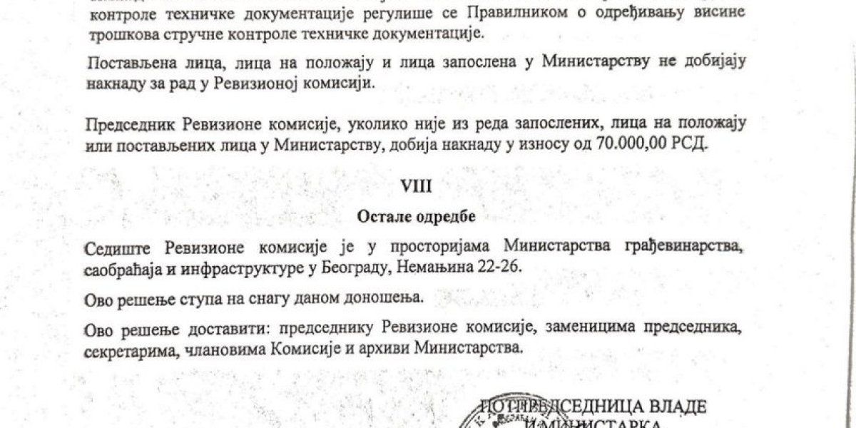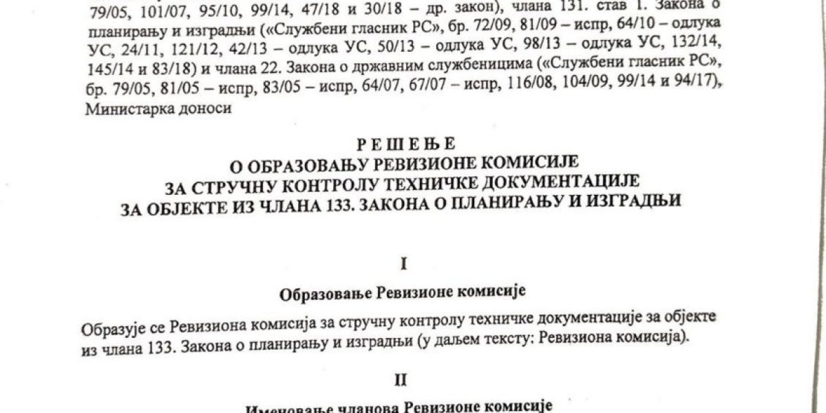 Ono što je ključno povodom rada ovog tela, jeste da bez pozitivnog izveštaja Revizione komisije nije moguće dobiti građevinsku dozvolu. To znači da je upravo ova komisija, svojim odlukama i potpisima, praktično garantovala da je projekat kojim su izvršeni radovi na Železničkoj stanici u Novom Sadu tehnički ispravan i bezbedan za izvođenje.