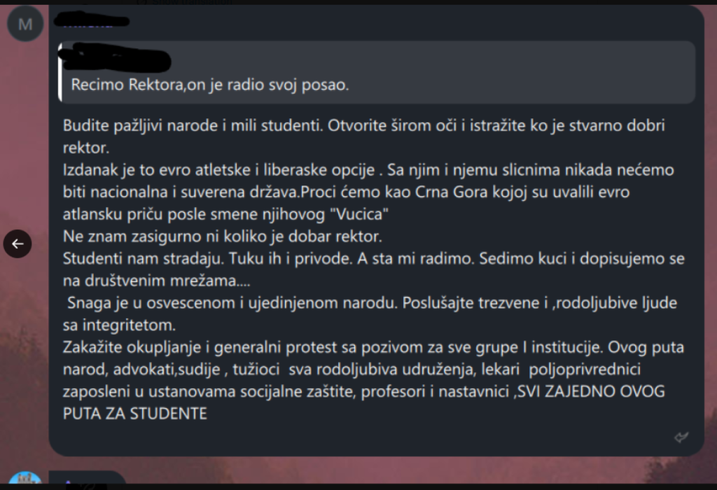 "Budite pažljivi i istražite ko je stvarno dobar rektor", navodi se u jednoj od poruka, uz tvrdnje da aktuelna politika vodi ka slabljenju države i institucija.
