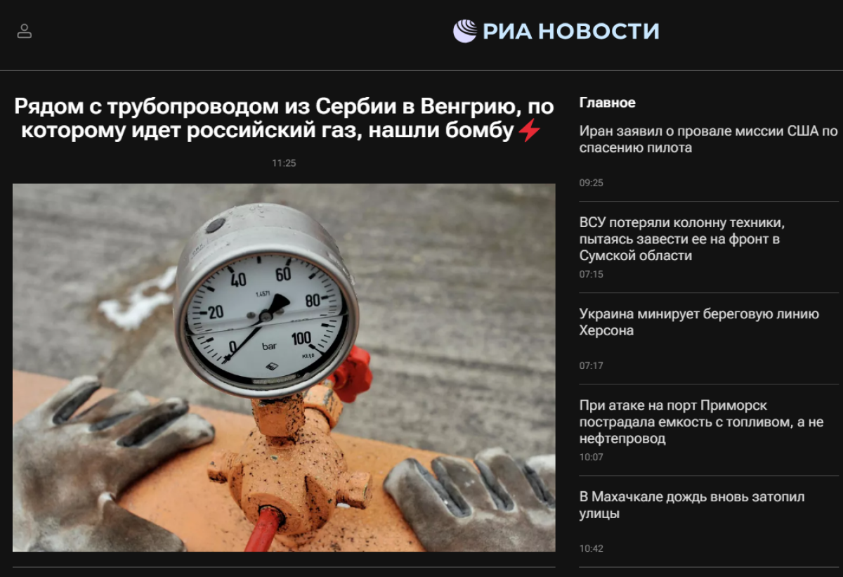 Upravo zato nije slučajno što su vodeći ruski mediji ovu vest podigli visoko. Kada se ugrozi pravac kojim ide ruski gas ka Mađarskoj i delu Evrope, u Moskvi se to ne posmatra kao lokalna epizoda, već kao pitanje energetske bezbednosti, stabilnosti snabdevanja i političkog pritiska na ceo region.