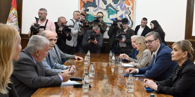 U Predsedništvu Srbije su oko 12.25 časova završene konsultacije predsednika Aleksandra Vučića sa predstavnicima Partije ujedinjenih penzionera, poljoprivrednika i proletera Srbije - Solidarnost i pravda.