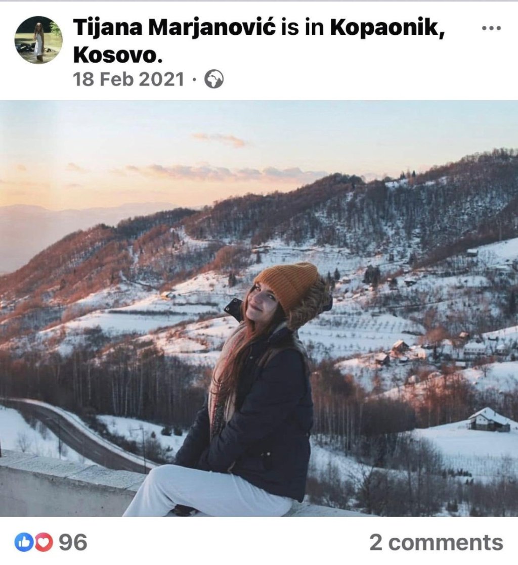 Međutim, jedna fotografija na njenom Instagram nalogu privlači posebnu pažnju. Ona je nastala na Kopaoniku i na njoj ova blokaderka pozira u prirodi na jednom zidiću. I to možda ne bi bilo uopšte neobično da Tića nije označila da se nalazi na Kopaoniku, na Kosovu!?!