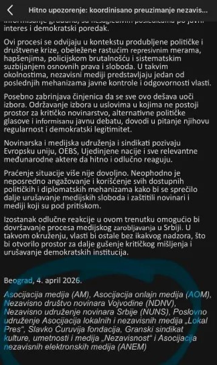 Novinarska i medijska udruženja iz Srbije i regiona ponovu su u centru pažnje, nakon što je u javnost dospeo sadržaj saopštenja u kojem se opet obrušavaju na Srbiju. Međutim, sada u izmenjenom formatu.