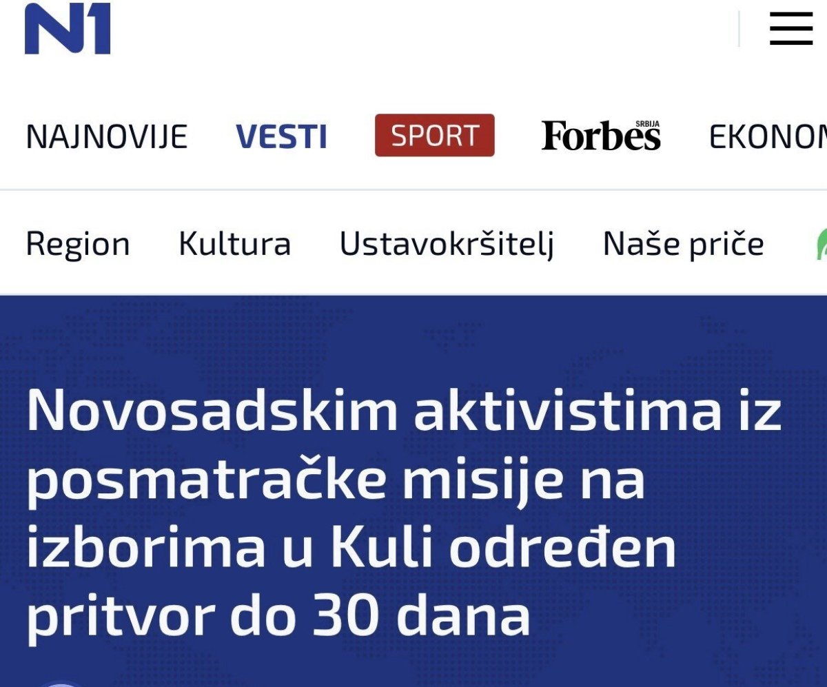 Ovaj blokaderski portal objavio je tekst pod naslovom: ''Novosadskim aktivistima iz posmatračke misije na izborima u Kuli određen pritvor do 30 dana'' u kom svesno manipulišu informacijama.