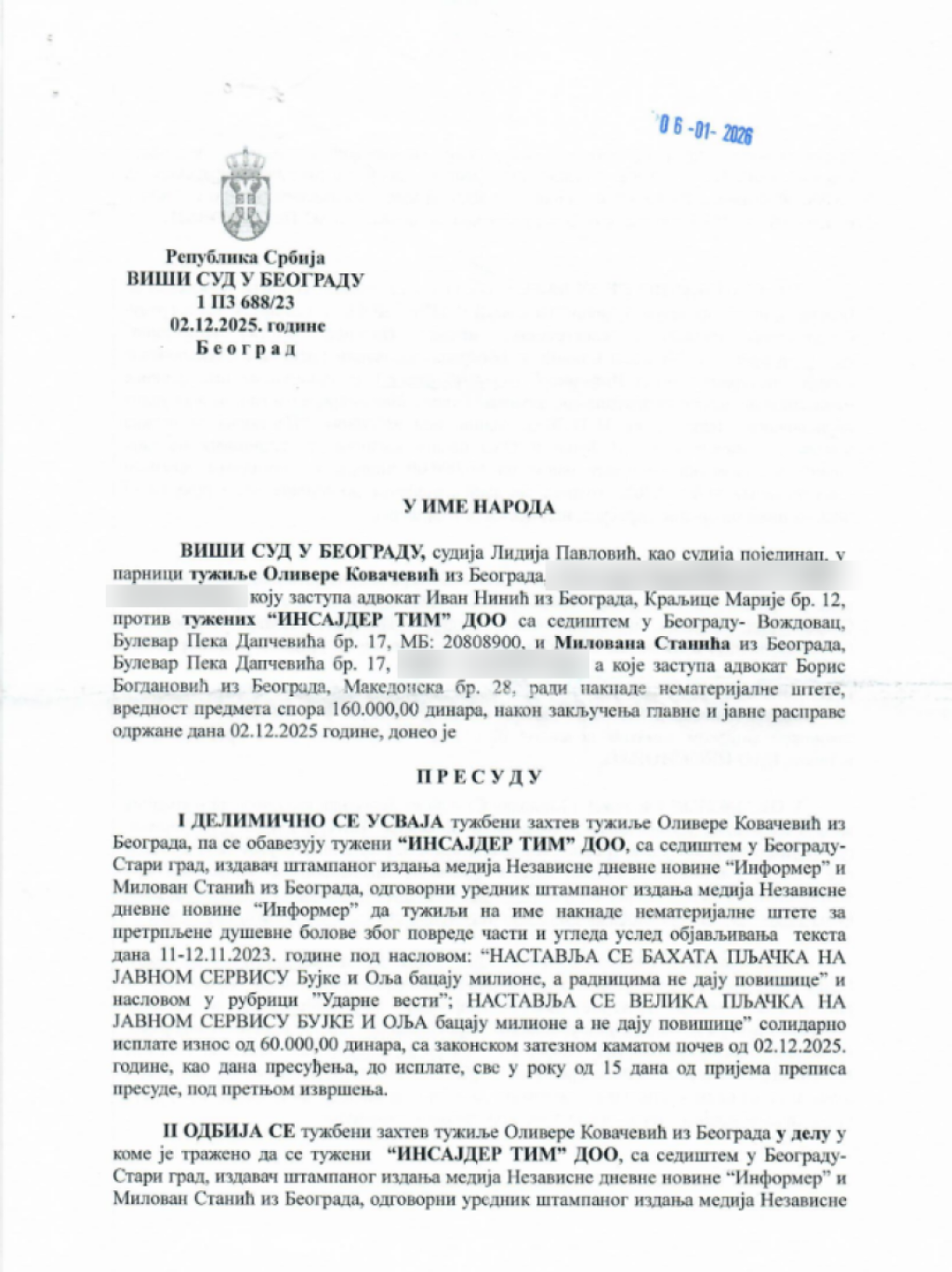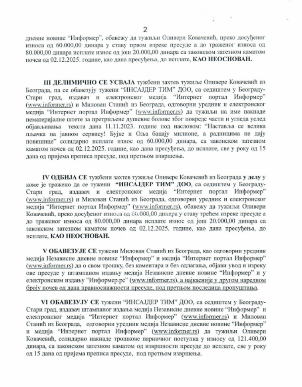 Informer objavljuje presudu.