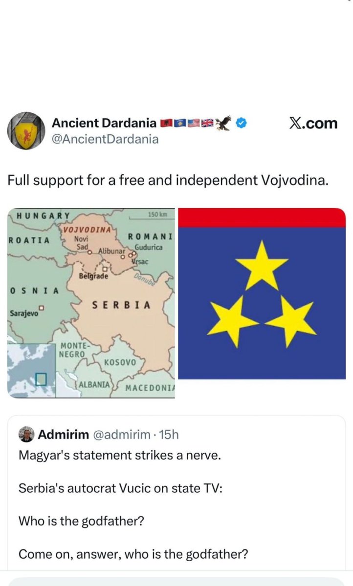 Na slici koju Albanci dele vidi se mapa Srbije na kojoj je odvojen njen sever - Vojvodina.