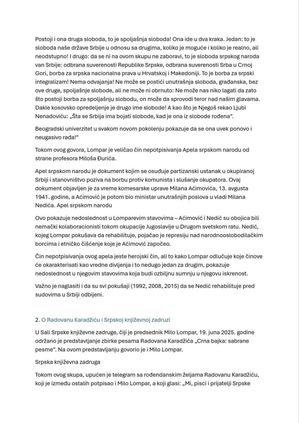 Prvi veto je „popila“ penzionerka Jasmina Paunović, a kako saznajemo, na Visokom savetu delegata odlučeno je da sa liste bude odstranjen profesor Milo Lompar. Dokument koji je stigao na adresu redakcije portala Vaseljenska otkriva da iza tih odluka stoji detaljno obrazloženje i jasna politička linija.