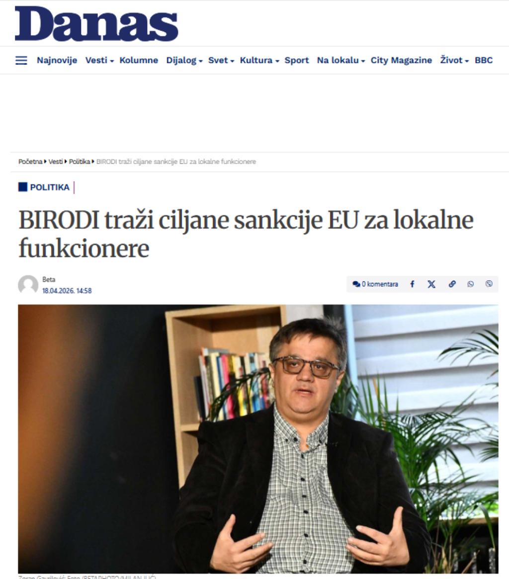 Inače, i blokaderski ideolog Zoran Gavrilović koji je na čelu BIRODI zatražio je sankcije za Srbiju.