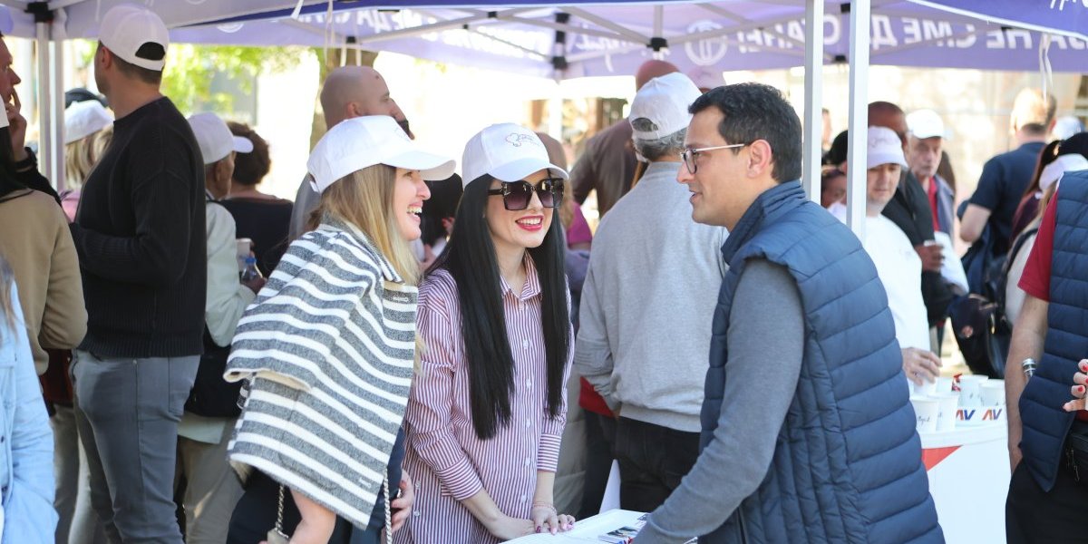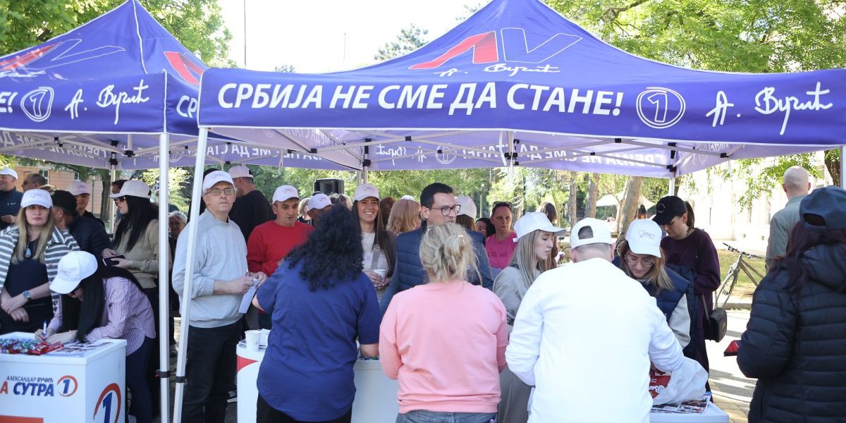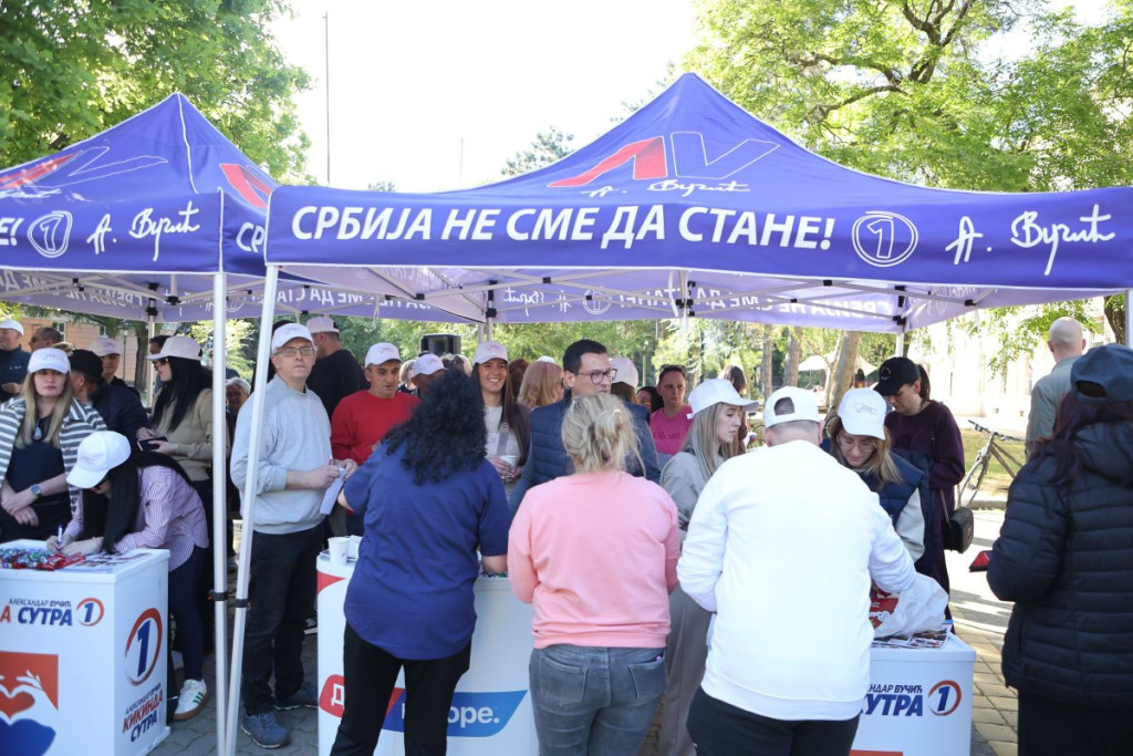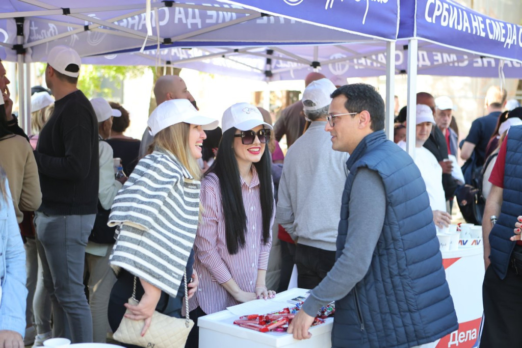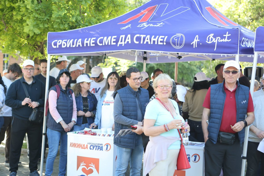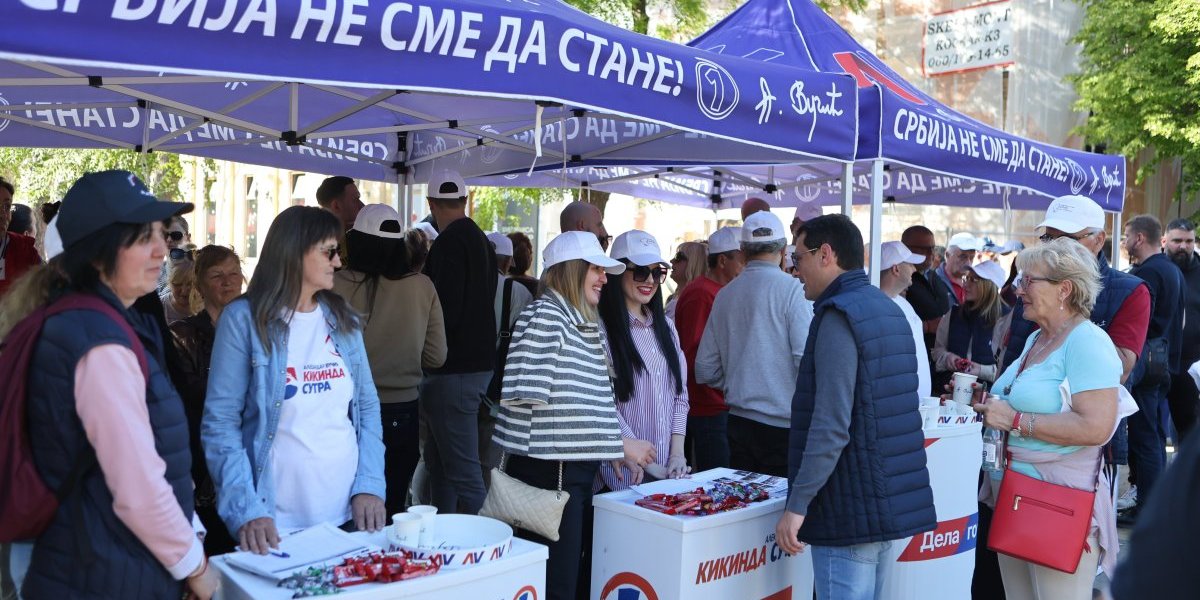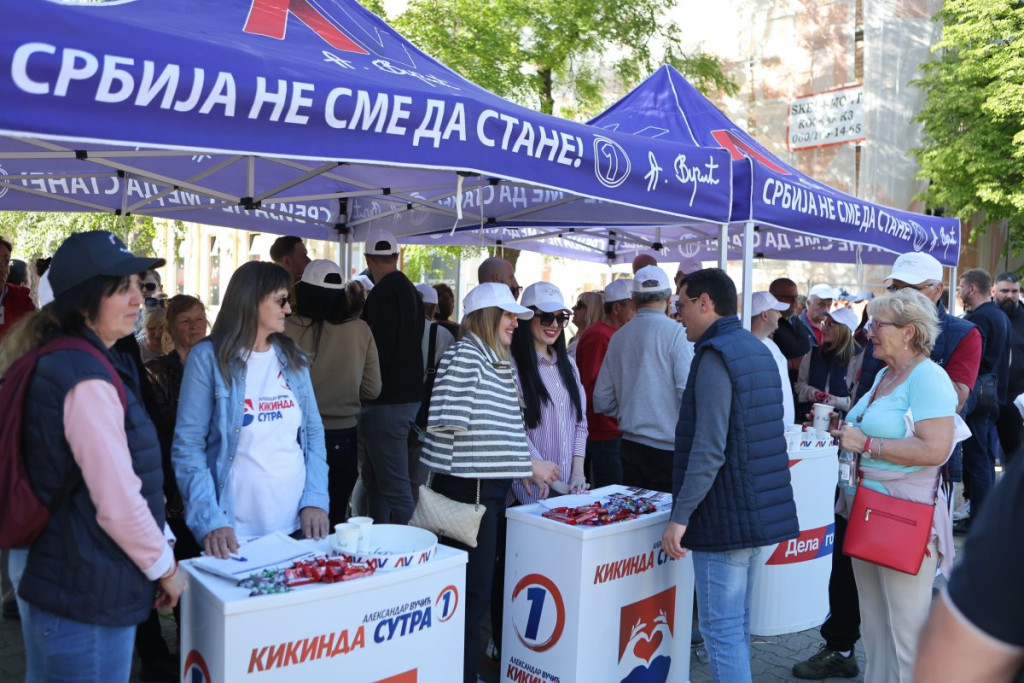 Na drugom kraju grada Kikinde, tačnije u samom srcu tog grada, organizovan je skup Srpske napredne stranke (SNS), gde su okupljeni građani zajedno sa prvim čovekom tog grada Mladenom Bogdanom poslali jednu popuno drugačiju sliku.