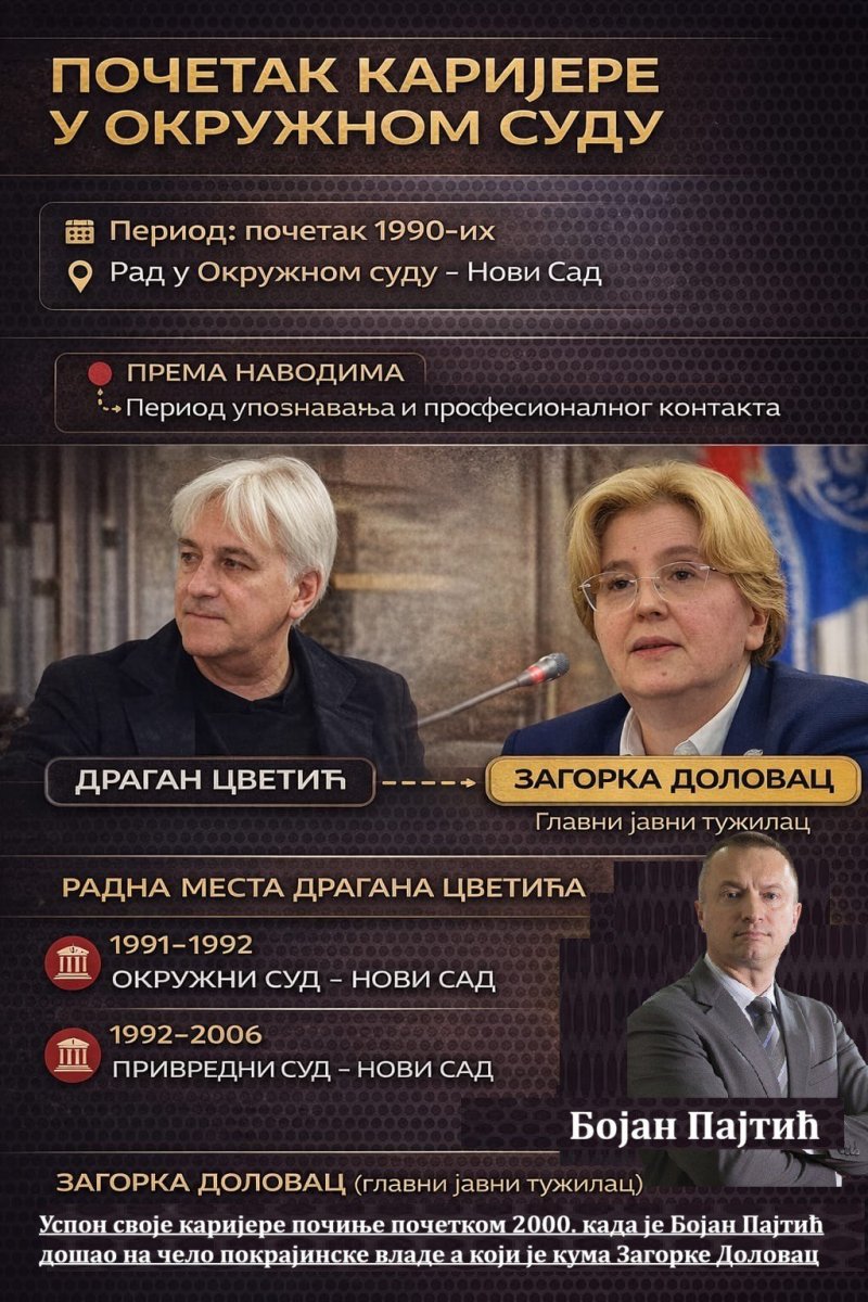 Dragan Cvetić, partner Vrhovne javne tužiteljke Zagorke Dolovac, čiji su životi obavijeni velom talom, proveo je značajan deo karijere u Privrednom sudu u Novom Sadu na poziciji upisničara, gde je "manevrisao" predmetima i učestvovao u nameštenim sporovima, saznaje Informer.