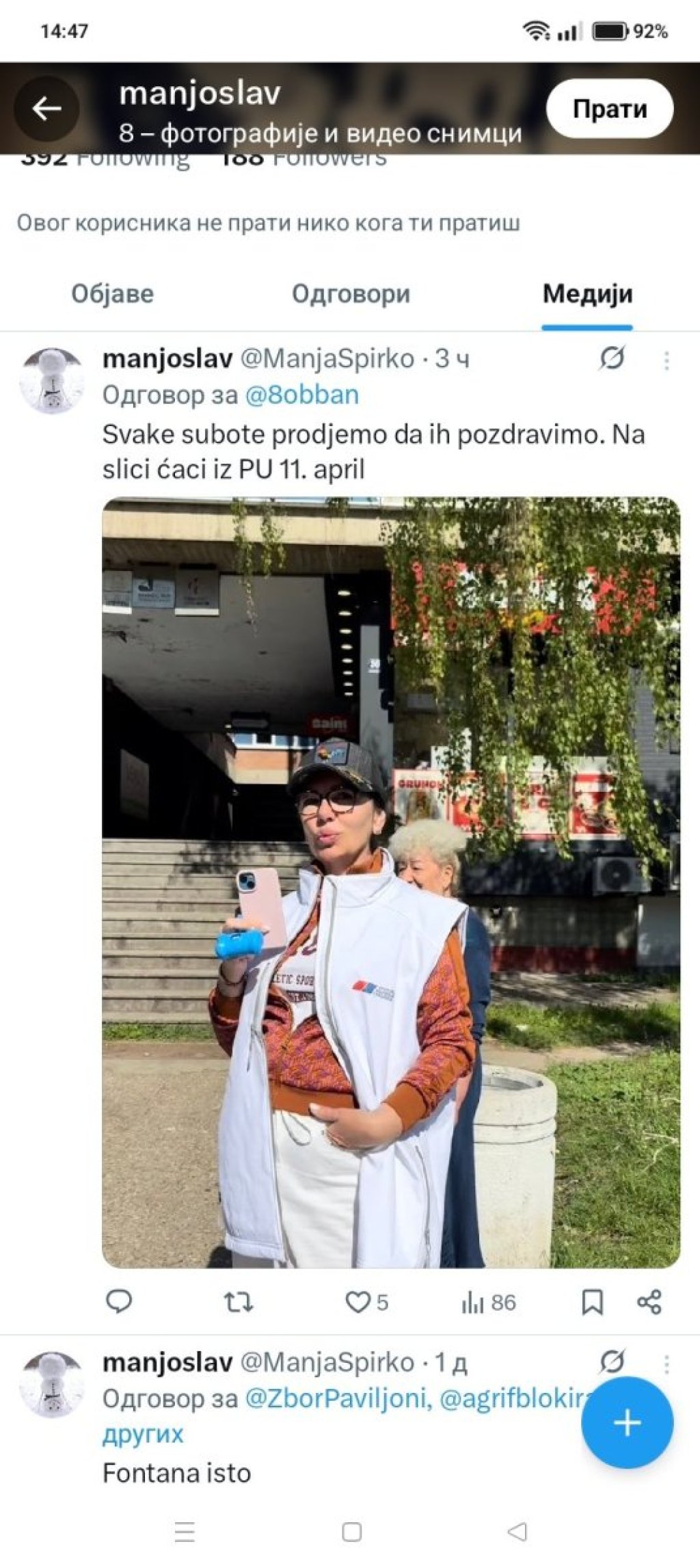Inače, ova blokaderka s dna kace danima se hvalila na društvenim mrežama kako joj je jedna od glavnih preokupacija obilaženje štandova SNS-a i maltretiranje onih koji ne misle kao ona.
