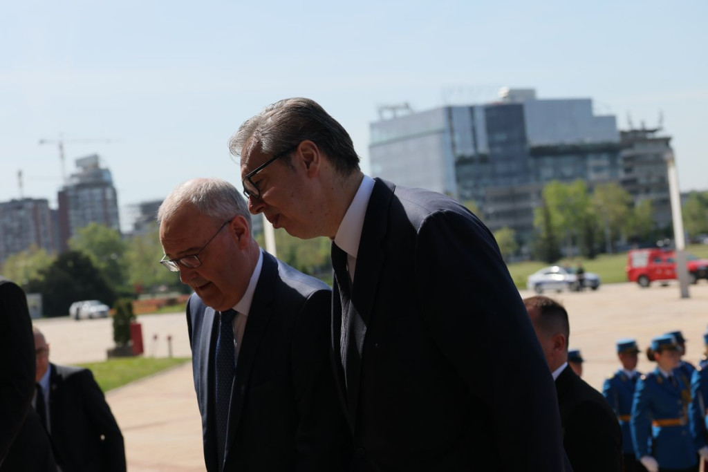 Predsednik Republike Srbije Aleksandar Vučić dočekao je danas predsednika Švajcarske Konfederacije Gi Parmelana, koji će boraviti u zvaničnoj poseti Srbiji 28. i 29. aprila 2026. godine.