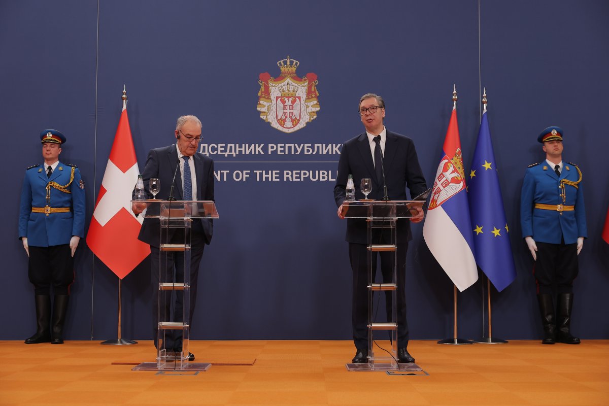 - Dakle, verujemo da budućnost naše saradnje može da bude. Pre svega u IT sektoru, veštačkoj inteligenciji, inovacijama, ali i u saobraćaju, farmaceutskoj industriji, vojnoj industriji. I, naravno, razgovarali smo i o tome Švajcarska je predložila da imamo sa njima dijalog, ali i da organizuju dijalog sa različitim grupama iz našeg društva po pitanju ljudskih prava. Ja sam rekao da smo uvek spremni da saslušamo ljude koji na profesionalan i nepristrasan način žele da razgovaraju o tome kako da poboljšamo i kako da učinimo boljim život svima koji su drugačiji, koji su različiti, različitim društvenim grupama, od političkih do nacionalnih manjina, i veoma otvoreni za svaku vrstu saradnje po tom pitanju. Još jedanput zahvalan - dodao je Vučić.