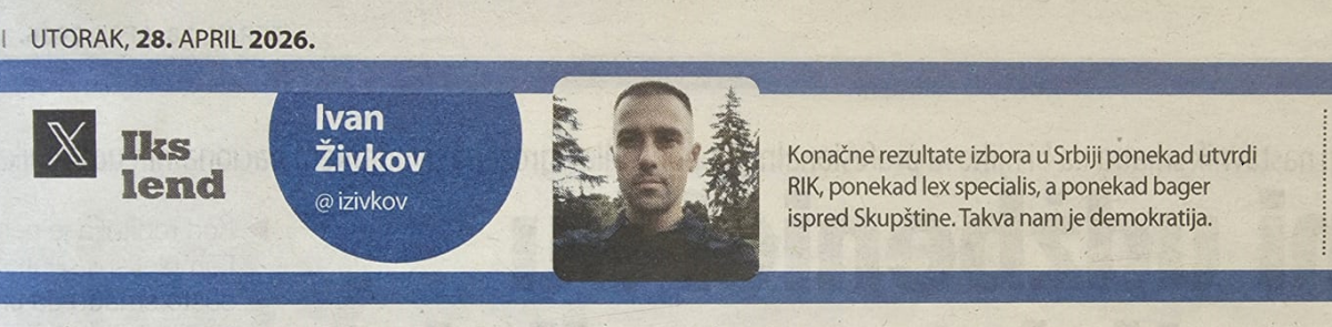 U današnjem izdanju blokaderskog lista pojavila se objava sa društvene mreže Iks od izvesnog Ivana Živkova koji poziva na nasilje na izborni dan.