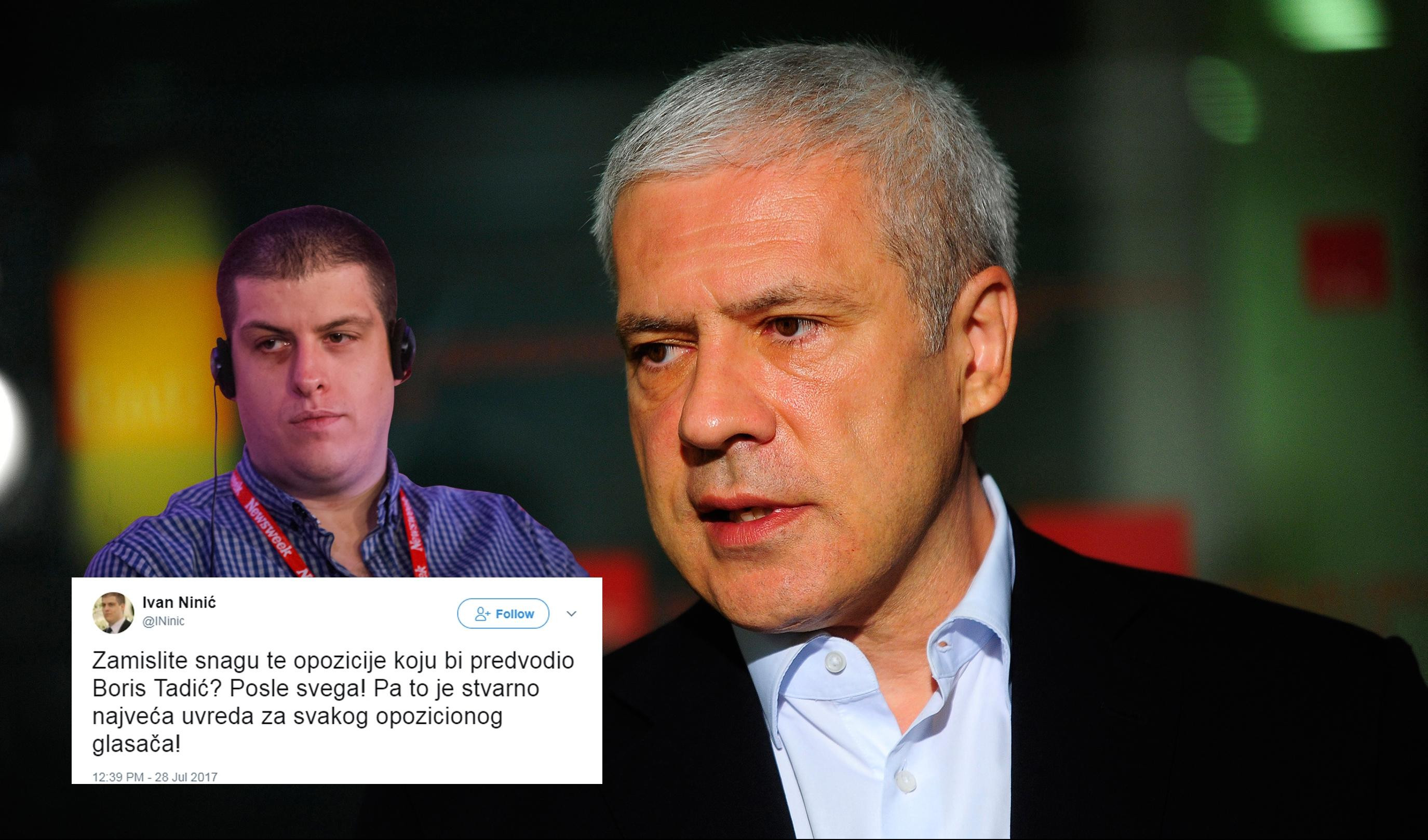 - Zamislite snagu te opozicije koju bi predvodio Boris Tadić? Posle svega! Pa to je stvarno najveća uvreda za svakog opozicionog glasača! - napisao je Ninić na svom Tviter nalogu i izazvao lavinu komentara koji uglavnom podržavaju njegov stav.