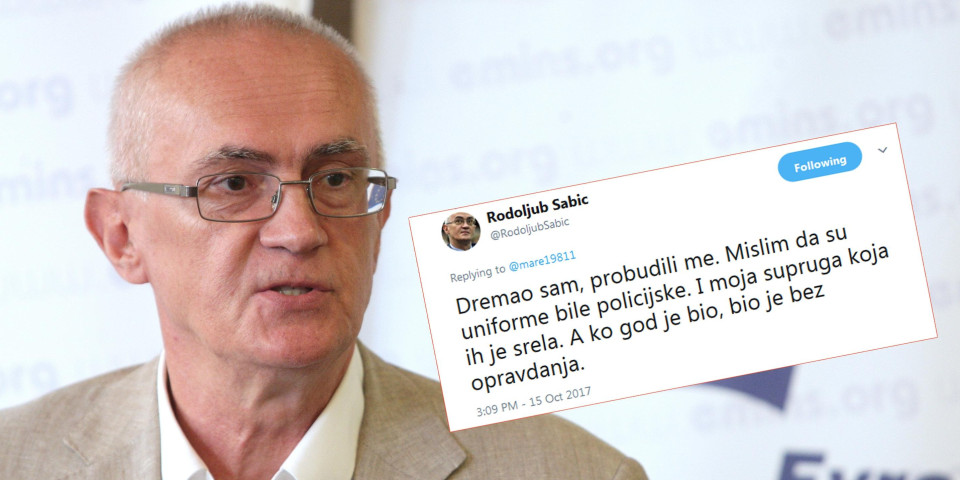 Dremao sam, probudili me. Mislim da su uniforme bile policijske. I moja supruga koja ih je srela. A ko god je bio, bio je bez opravdanja. — Rodoljub Sabic (@RodoljubSabic) October 15, 2017
