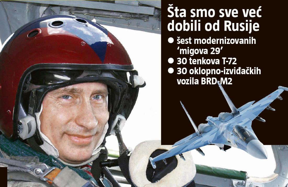 - Morate biti svesni da je ovde reč o vrlo ozbiljnim stvarima i da moraju da se preciziraju i najsitniji detalji. Ukoliko Srbija posle šest 'migova 29', 30 tenkova T-72 i 30 oklopno-izviđačkih vozila BRD-M2 dobije od Rusije i S-300, mi ćemo postati najjača vojna sila u regionu i niko neće smeti da nas napada... - zaključuje on.