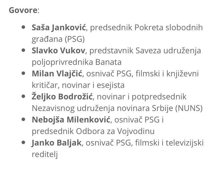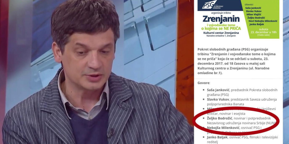 Željko Bodrožić, novinar i potpredsednik Nezavisnog udruženja novinara Srbije (NUNS) najavljen je kao učesnik tribine "Zrenjanin i vojvođanske teme o kojima se ne priča" koju organizuje lider PSG Saša Janković!