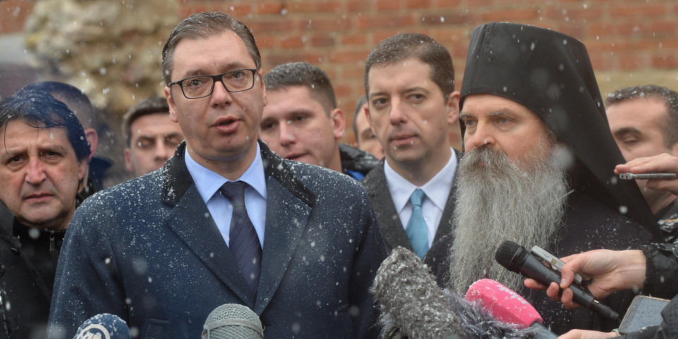 - Srbi moraju da ostanu i opstanu na svojim ognjištima na Kosovu i Metohiji. Ne sme da nas bude manje na zemlji na kojoj smo uvek živeli. Zato ćemo se kao država boriti ne sve načine - poručio je Vučić iz Banjske, gde ga je, na jakom snegu, i uz zvuk manastirskih zvona, dočekao veliki broj građana i sveštenstvo manastira.