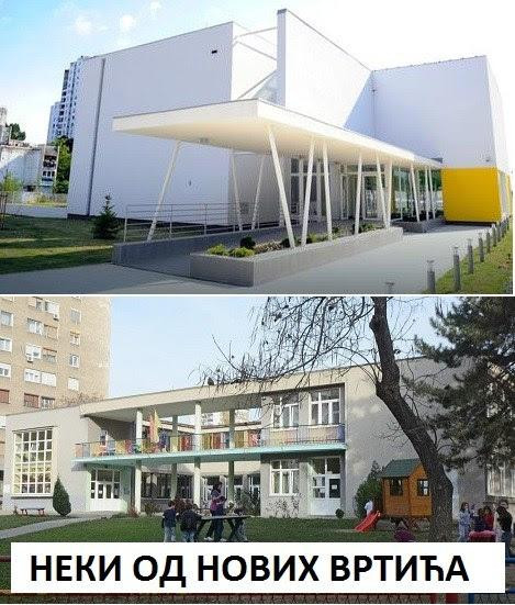 U protekle četiri godine izgrađeno je osam predškolskih ustanova, po dve u Novom Beogradu i na Voždovcu, i jedna na Paliluli, u Obrenovcu, na Zvezdari i u Zemunu, čime je otvoreno dodatnih 1.500 mesta za naše mališane. Imamo dvostruko više vrtića nego u Đilasovo doba, i dvostruko više dece ide u vrtiće nego u Đilasovo doba (ukupno u Đilasovo doba 47.000 dece u vrtićima, a danas 70.000!). Početkom iduće godine završavaju se i radovi na adaptaciji Biblioteke „Milutin Bojić” u Ovči za potrebe predškolske ustanove, a objekat će moći da primi 50 dece. Polovinom 2018. godine će biti završena izgradnja vrtića u naselju Altina u Zemunu za potrebe 200 mališana.