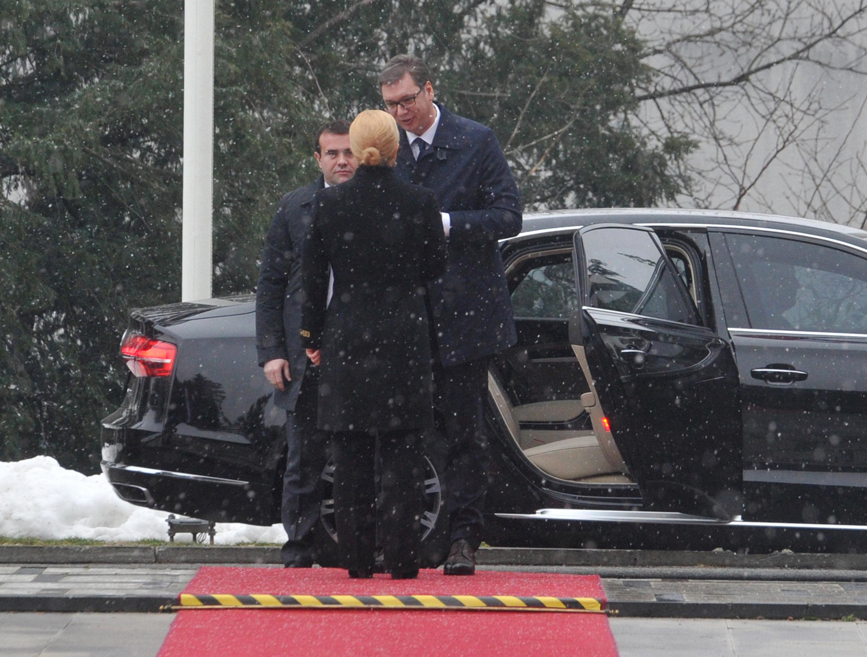 Nakon dočeka, predsednica Grabar-Kitarović i Vučić povukli su se na sastanak u četiri oka, a uslediće sastanak sa zvaničnim delegacijama.