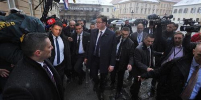 Kamere su naime pratile predsednika Vučića koji je pešice pošao iz sedišta hrvatske vlade preko Markovog trga do zgrade hrvatskog parlamenta, a na snimku se samo čulo kako Bulj dobacuje nešto Vučiću, ali, pošto ga je obezbeđenje zadržalo dalje, nije se moglo razabrati šta je doviknuo.