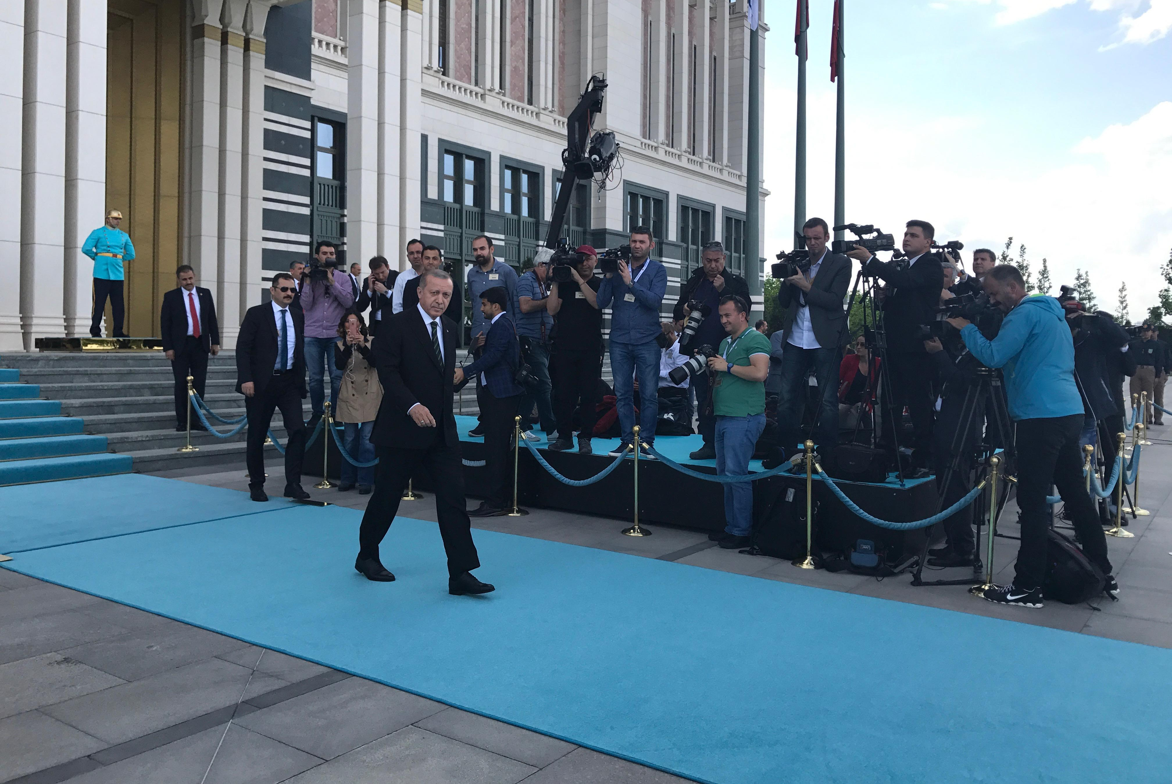 Na putu kroz ogroman kompleks Predsedničke palate bile su postavljene srpske i turske zastave.