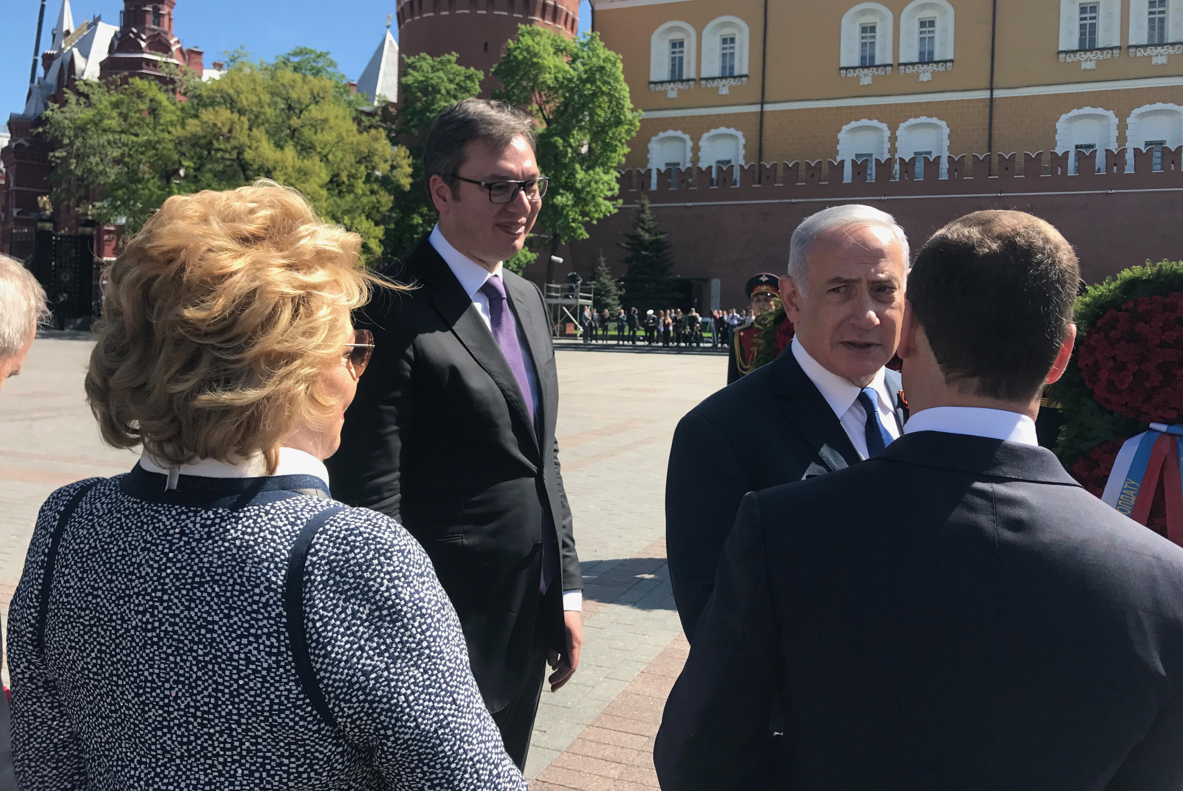 Predsednici Vučić, Putin i Netanijahu vence su položili nakon tradicionalne Parade pobede, kojom se obeležava 9. maj, Dan pobede nad fašizmom.