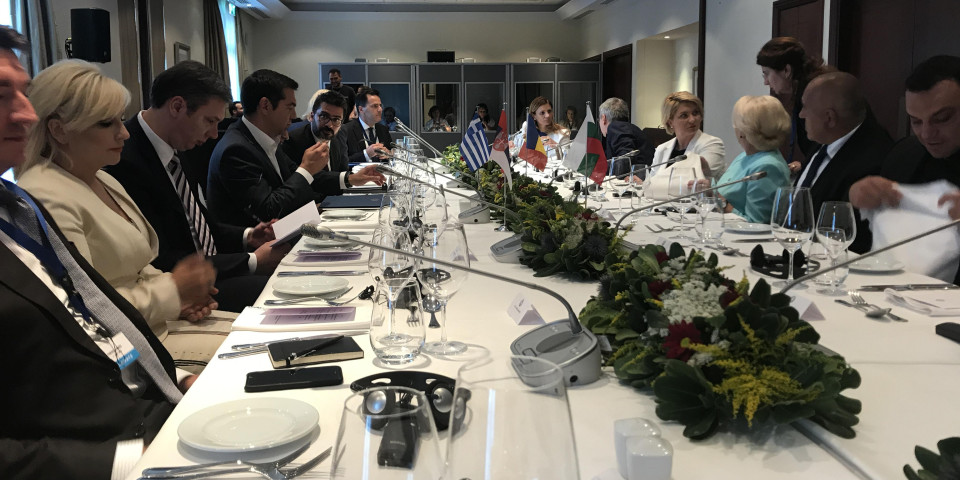 Za stolom do Ciprasa sedi srpski predsednik, a preko puta njih sede premijeri Bugarske i Rumunije.