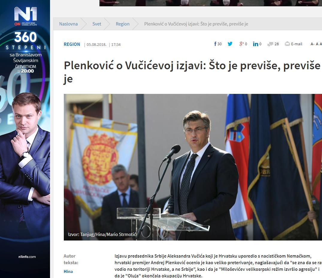 "Plenković o Vučićevoj oizjavi: Što je mnogo mnogo je", samo je jedan od naslova.