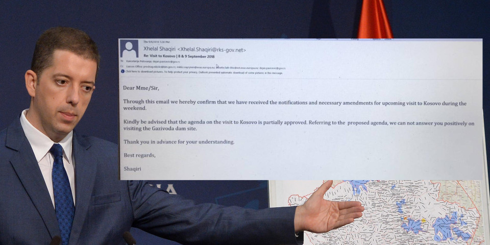 "Ovim potvrđujemo da smo dobili obaveštenje i potrebnu agendu za predstojeću posetu Kosovu tokom vikenda. Skrećem pažnju da je agenda posete Kosovu delimično odobrena. U vezi predložene agende ne možemo da vam pozitivno odgovorimo na zahtev posete postrojenja Gazivode. Hvala unapred na razumevaju", navodi se u mejlu, koji je Dželal Šaćiri u ime prištinskih vlasti uputio oficiru za vezu Dejanu Pavićeviću.